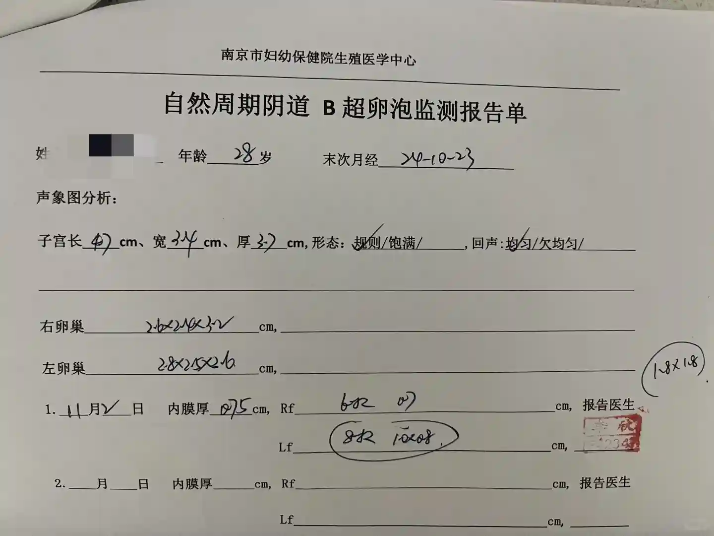 本月2号去了市妇幼检查,此时已备孕快一年半了,还是想做详细的检查,挂了江华医生的号,态度真的很好,不懂得都告诉我,还给我写下来,问我为什么卵泡监测就做了一次,我傻了,问应该要做几次?她说正常是3到4次,今天先做1次,后面每隔一天去当地医院做一次,具体也要看卵泡发育程度,问了我月经基础情况,同样是第十天,10mm*8mm,刚好达到优质卵泡标准,我还蛮开心的。