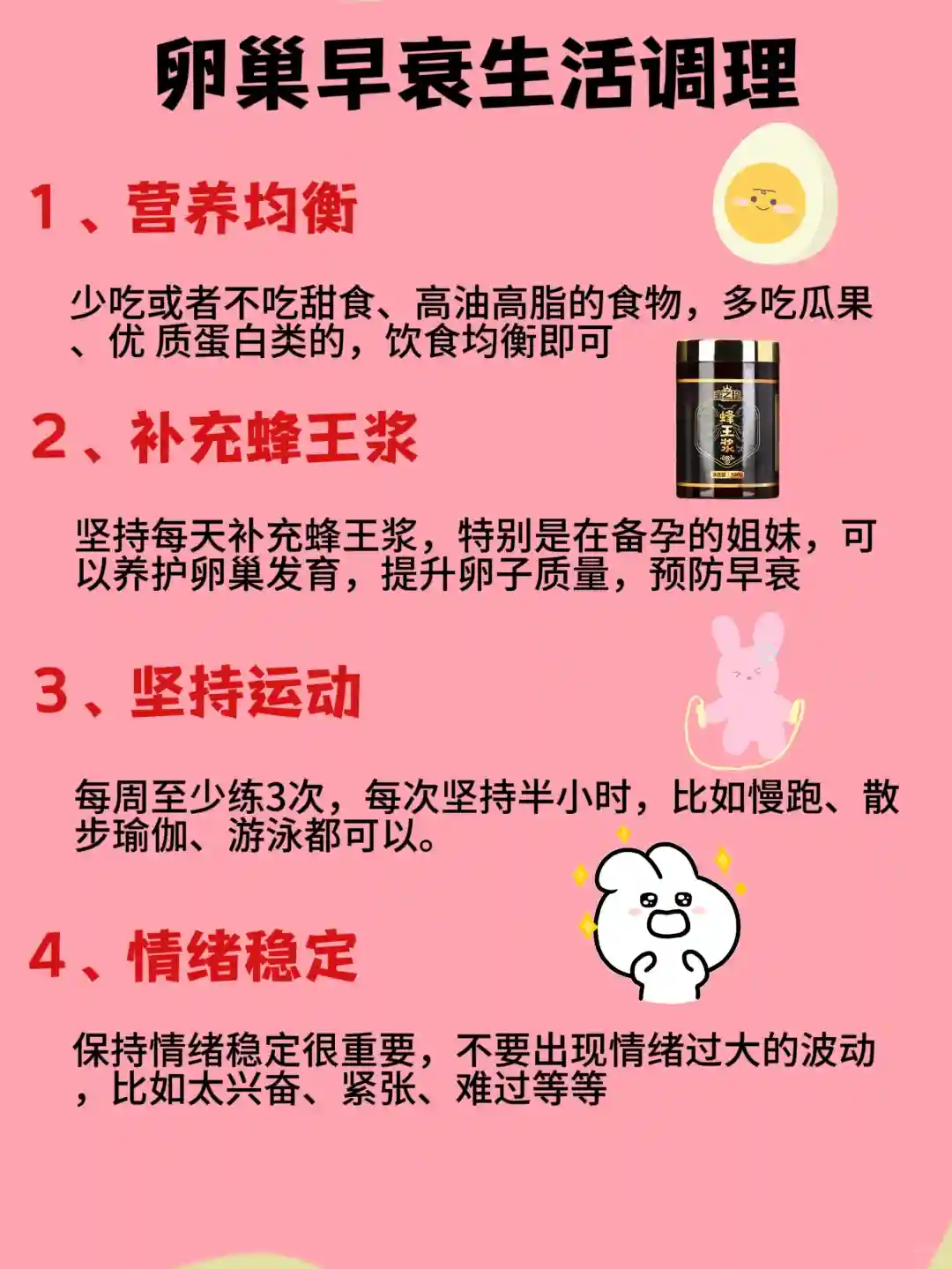 坚持每天补充蜂王浆,特别是在备孕的姐妹,可以养护卵巢发育,提升卵子质量,预防早衰
