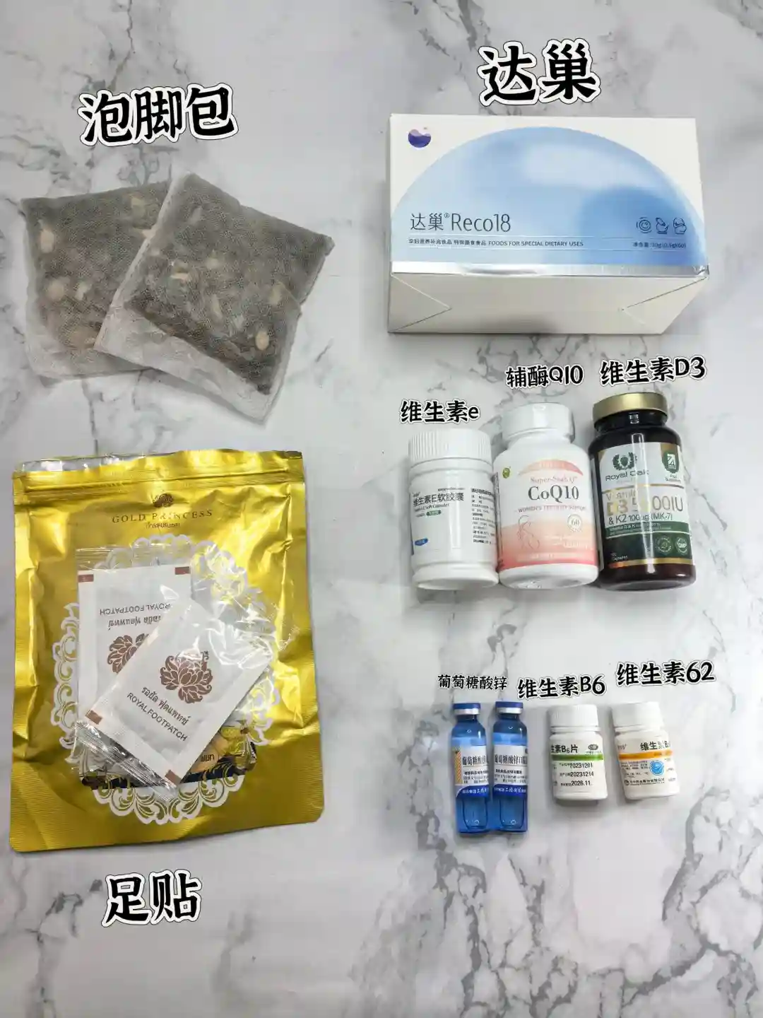 👉晚餐:达巢四粒,维生素C两粒,维生素E一粒,葡萄糖酸锌一瓶