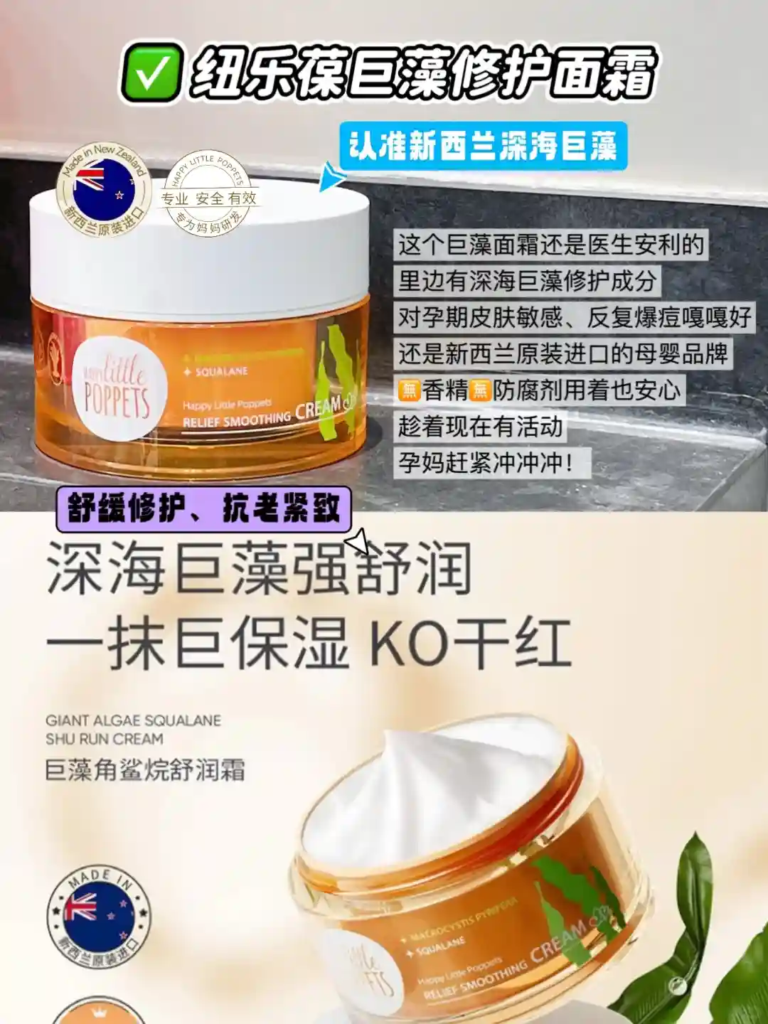 但是不管怎么样,孕期有一个共同点就是皮肤容易敏感、反复爆痘,那么如何修护呢?我孕期也是反复爆痘,皮肤可敏感,用的就是这个纽乐葆巨藻修护面霜,里边有巨藻成分,修护皮肤嘎嘎牛!