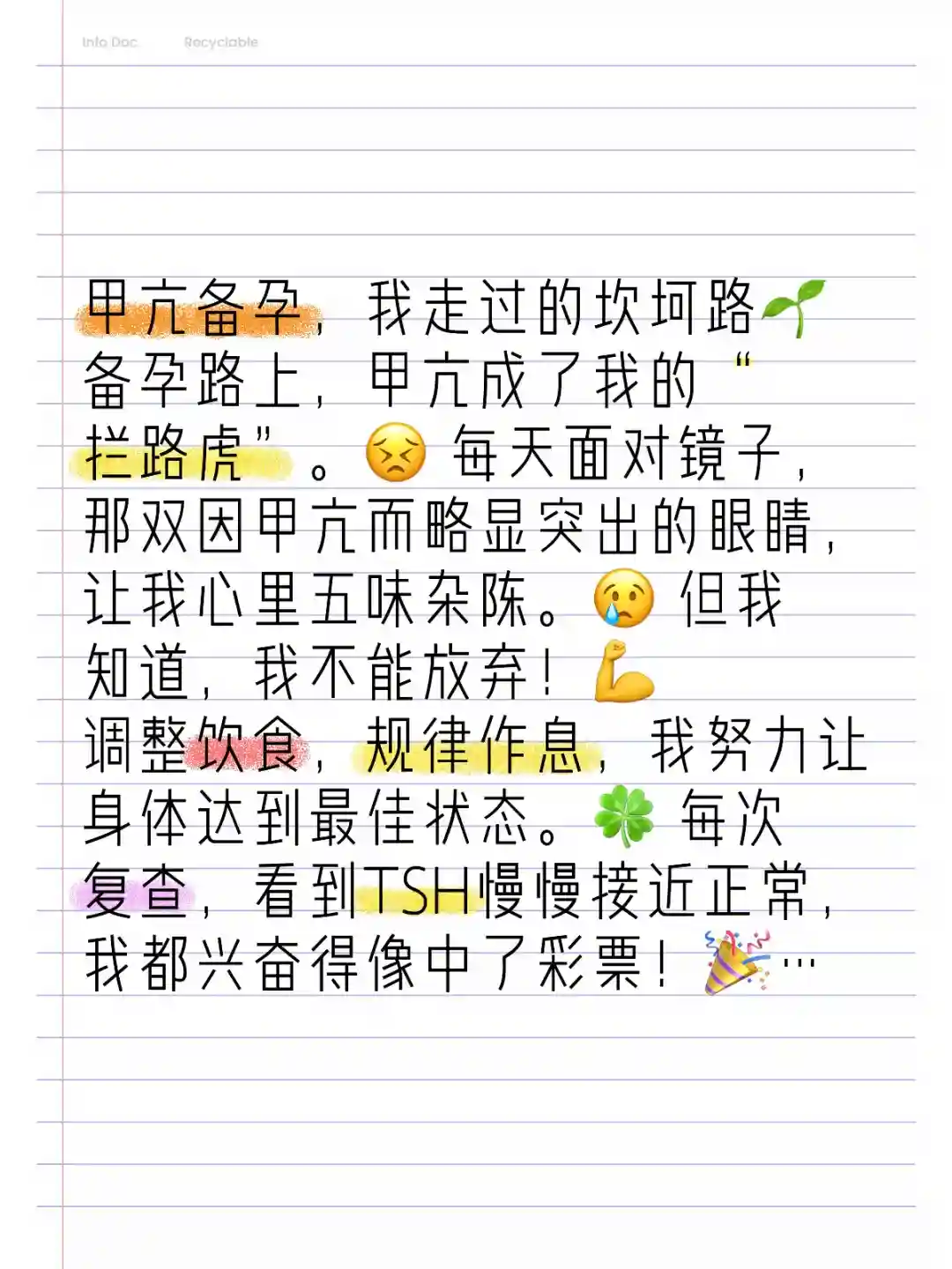 调整饮食,规律作息,我努力让身体达到最佳状态。 每次复查,看到TSH慢慢接近正常,我都兴奋得像中了彩票!#甲亢
