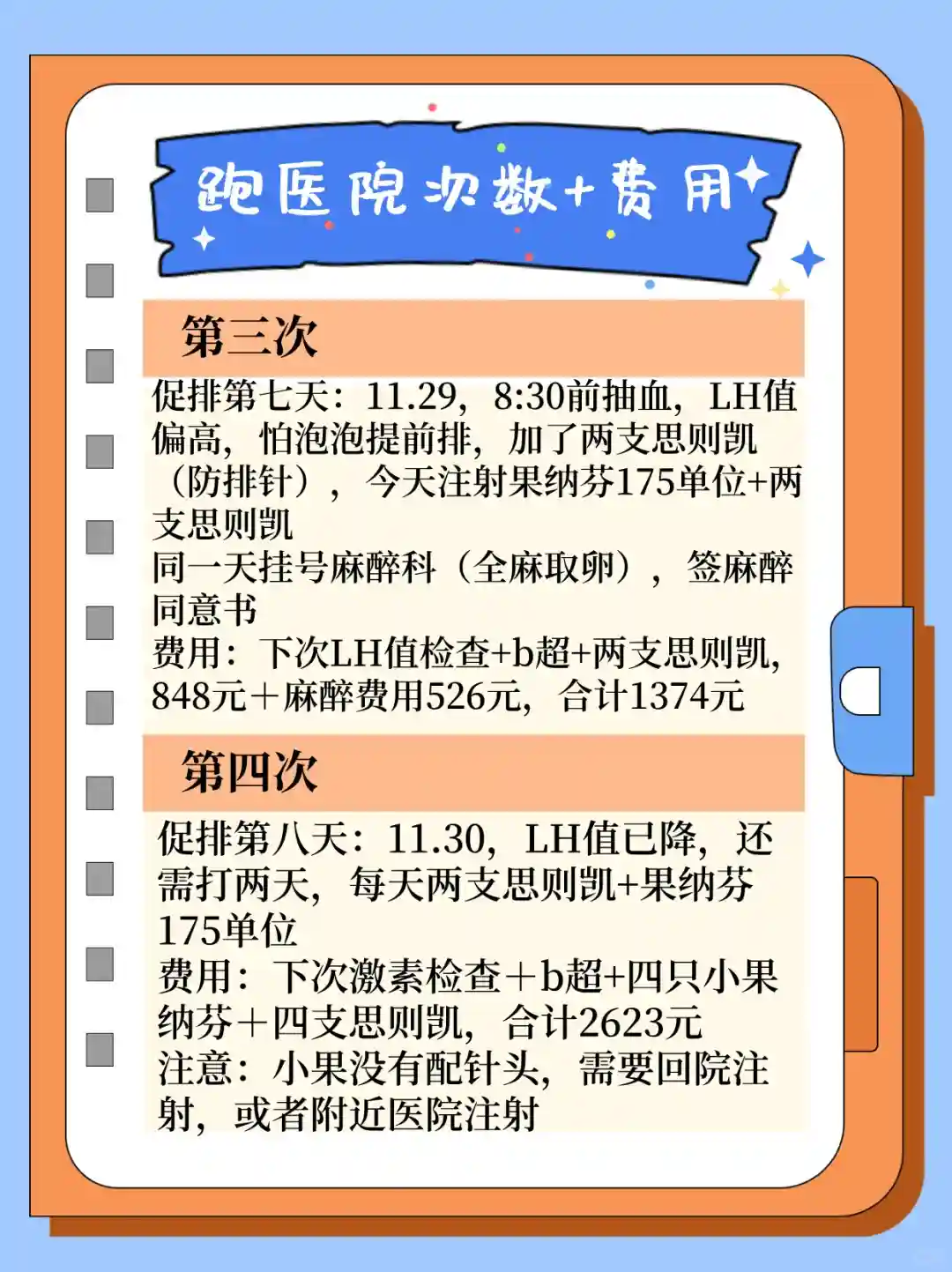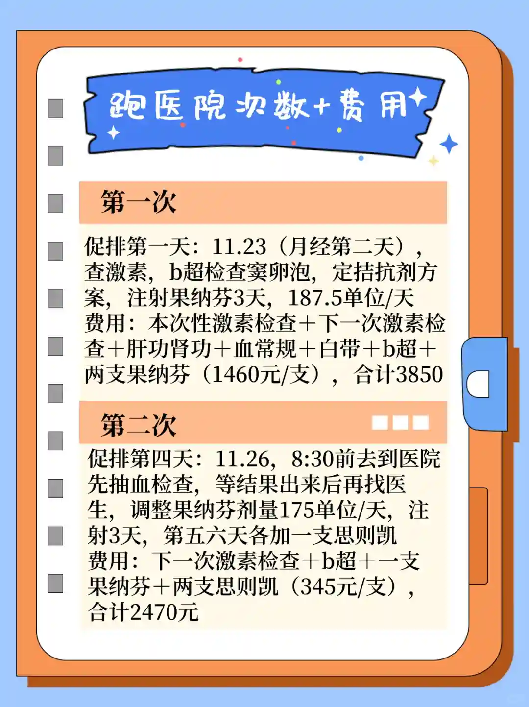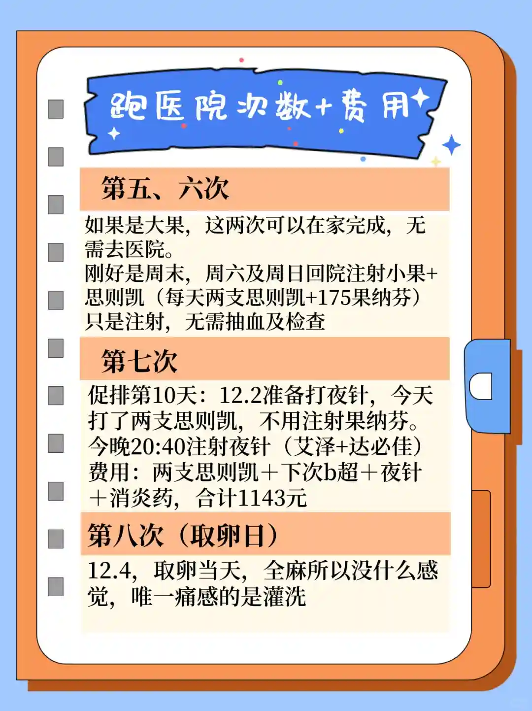 跑医院次数根据每个人的方案,我的只是参考