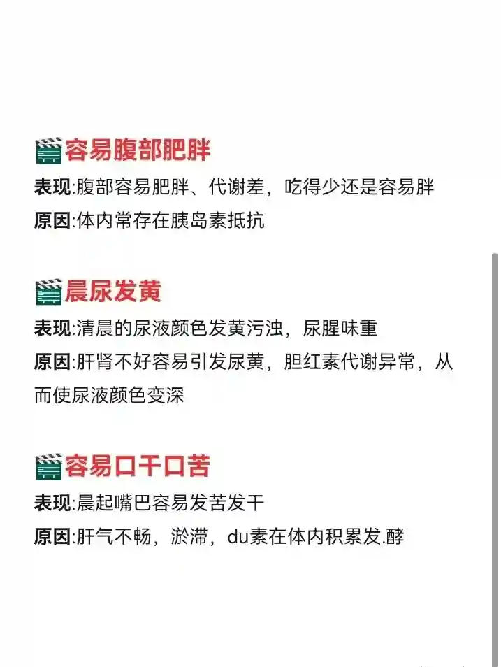 表现:清晨的尿液颜色发黄污浊,尿腥味重原因:肝肾不好容易引发尿黄,胆红素代谢异常,从而使尿液颜色变深