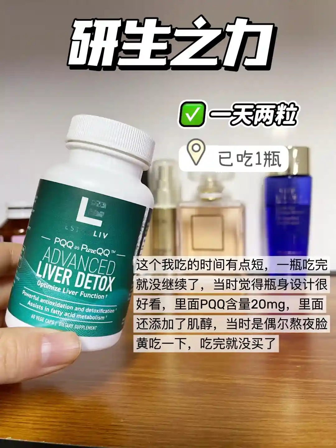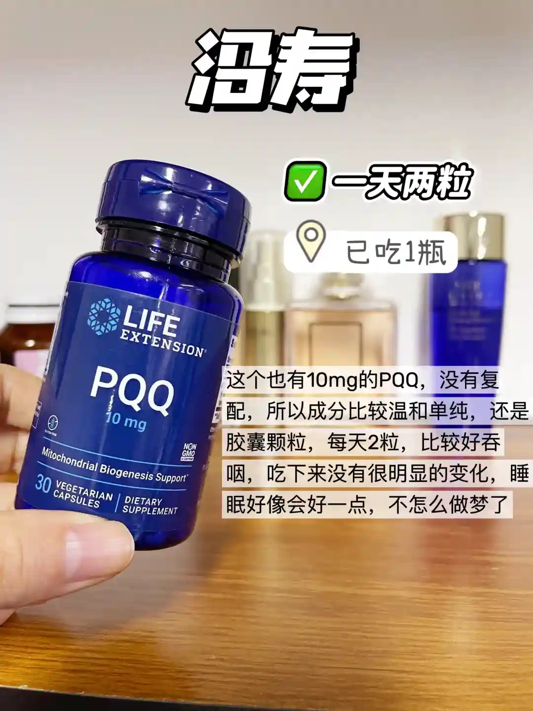 不懂的时候都是看明星代言入的,每粒20mg的pqq,我用来简单养护维稳状态很ok,但没办法同时满足我的抗衰养巢需求,所以吃了半瓶就闲置了
