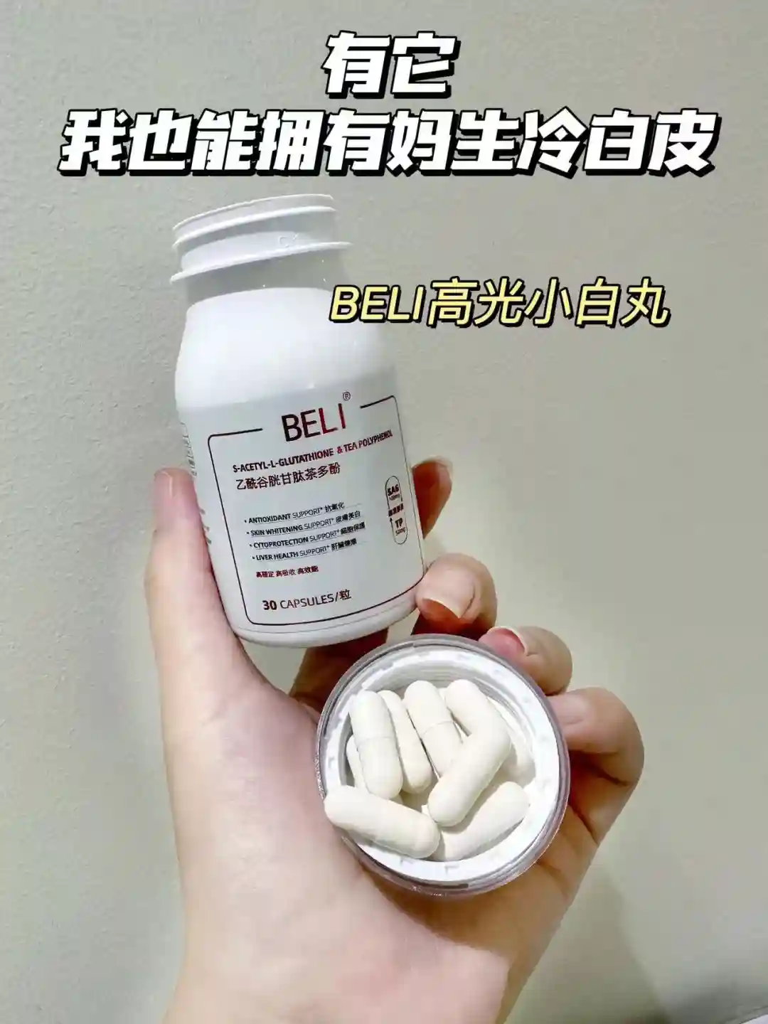 1+1>2#乙酰谷胱甘肽 #BELI乙酰谷胱甘肽茶多酚 #内调外养好气色 #茶多酚 #BELI高光小白丸 #好皮肤吃出来