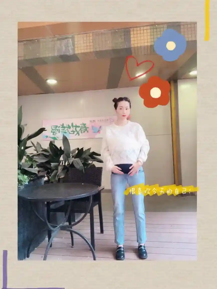 为了让我生产时体力好一点,最近天天被老公妈妈拉着在楼下散步,说是早日锻炼起来,真的有这个说法吗?...每天都让我走满至少5000步~好累喂~💝还有,最近我再一次感受到了大胯的腿粗真的太讨厌了,自从怀了,觉得胯又大了一圈,完全不能穿任何包腿的裤子,真的太丑了...只有这条稍微有点直筒的牛仔裤还能让我感受到点善意...以后就只和直筒裤做好朋友了!~💖