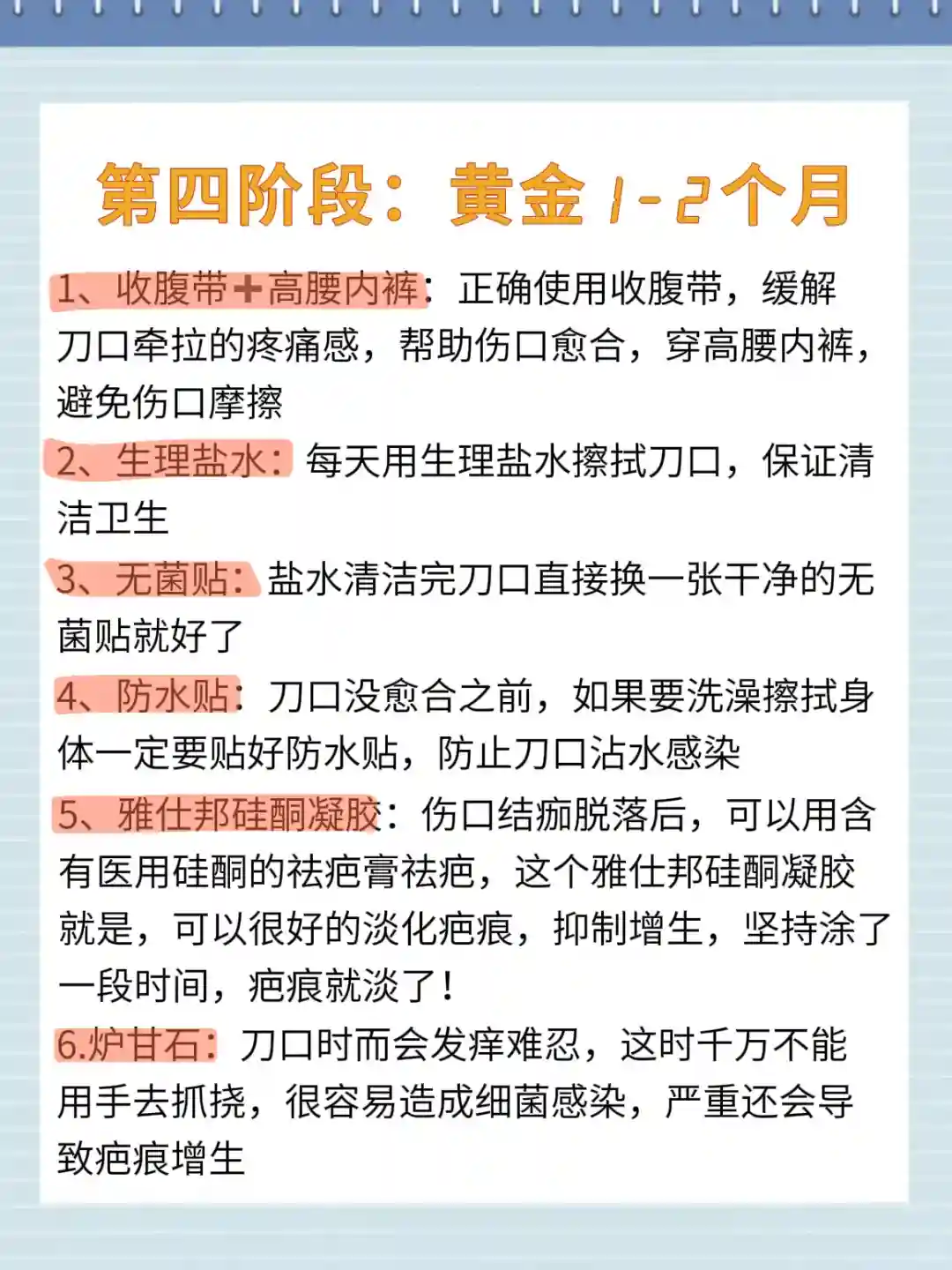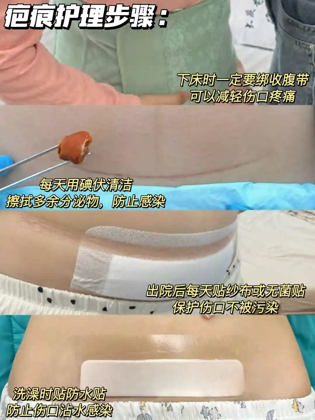 ✅收腹带+高腰内裤:正确使用收腹带,缓解刀口牵拉的疼痛感,帮助伤口愈合,穿高腰内裤,避免伤口摩擦