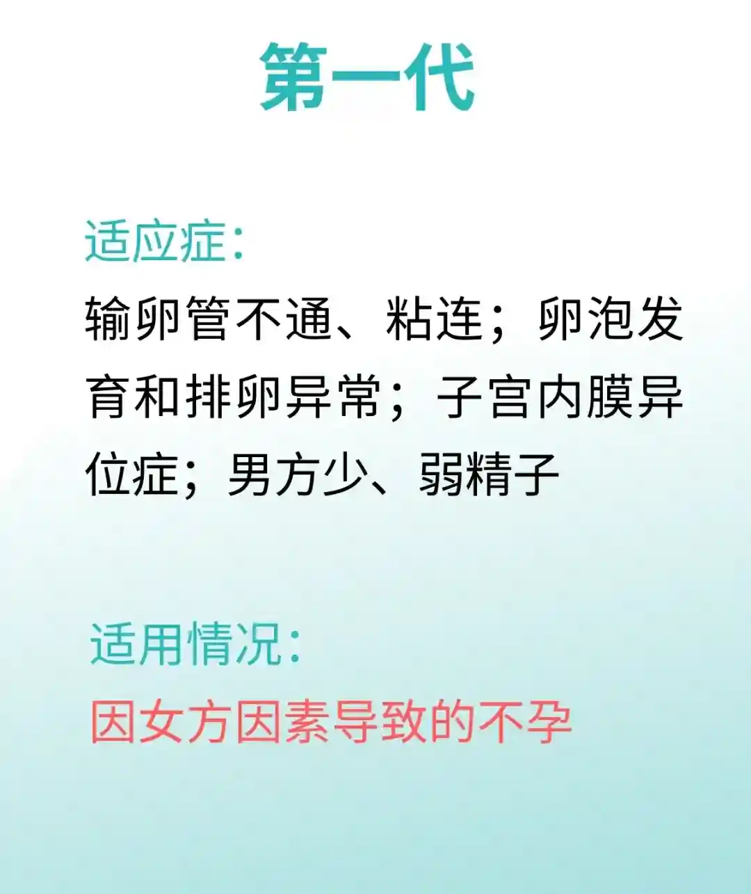 一代试管,适合女方因素导致的不孕。