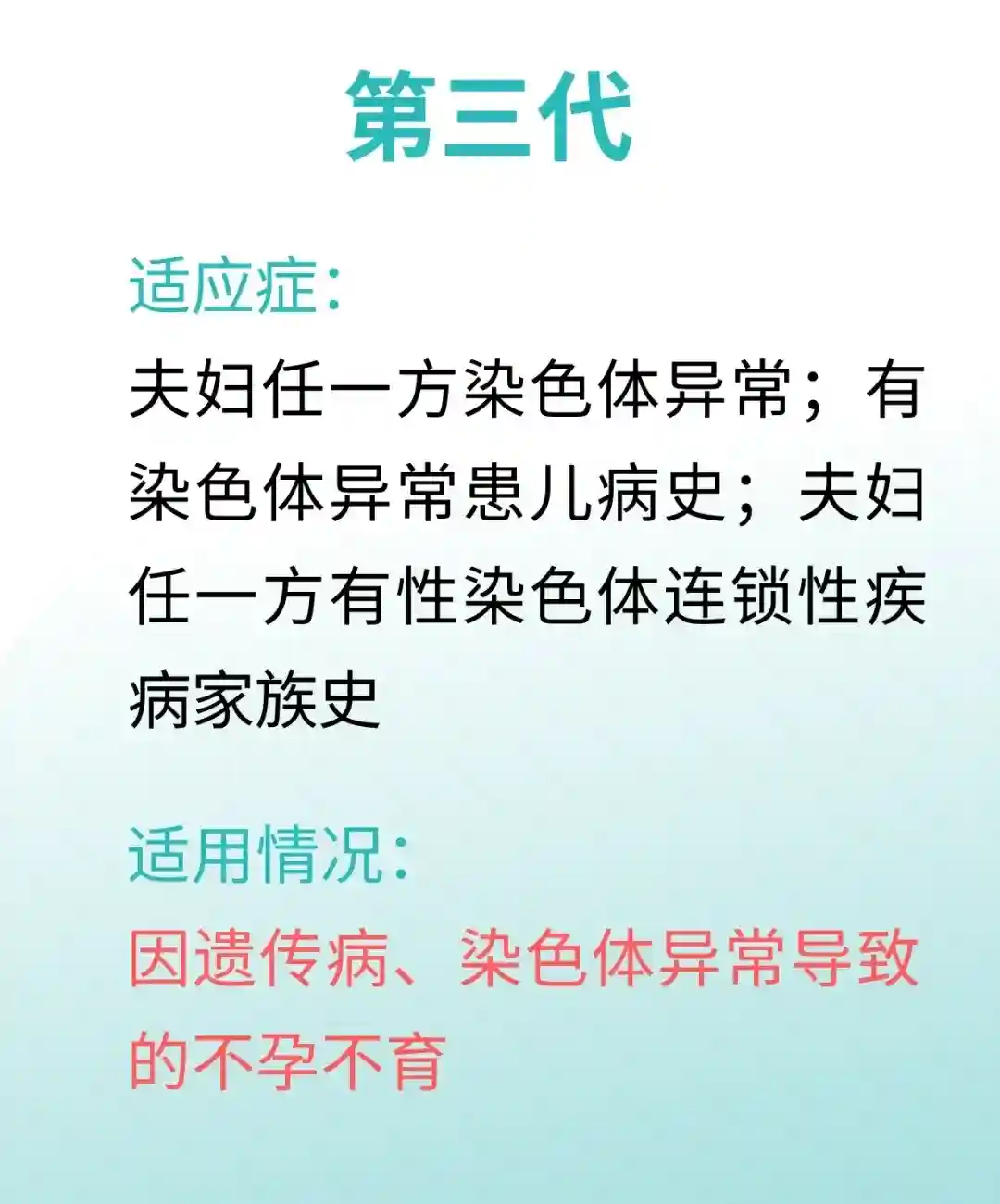 三代试管,适合因遗传病染色体异常导致的不孕。