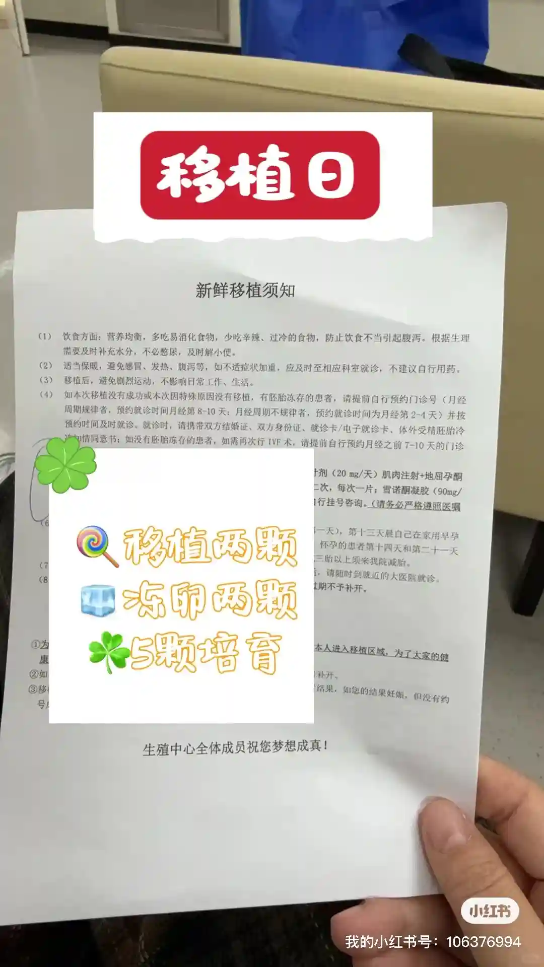 今天很幸运移植的大夫是北医三院比较有名的马彩虹专家 据说她移植的成功率很高🍀(期待开奖)好运🍀