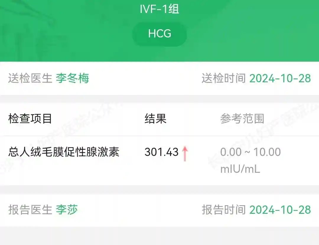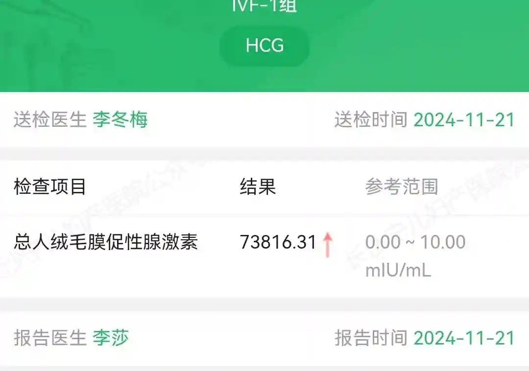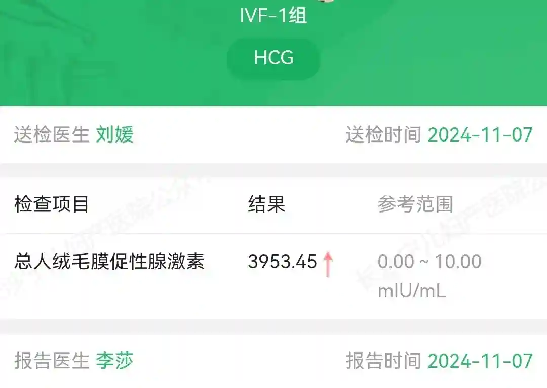 真的像做梦一样,我真的怀孕了,特别感谢生殖医院的所有医护人员,帮我做B超的刘媛医生,帮我取卵和移植的舒晓巍主任和彭令华主任,特别感谢一路陪伴我的李冬梅主任。