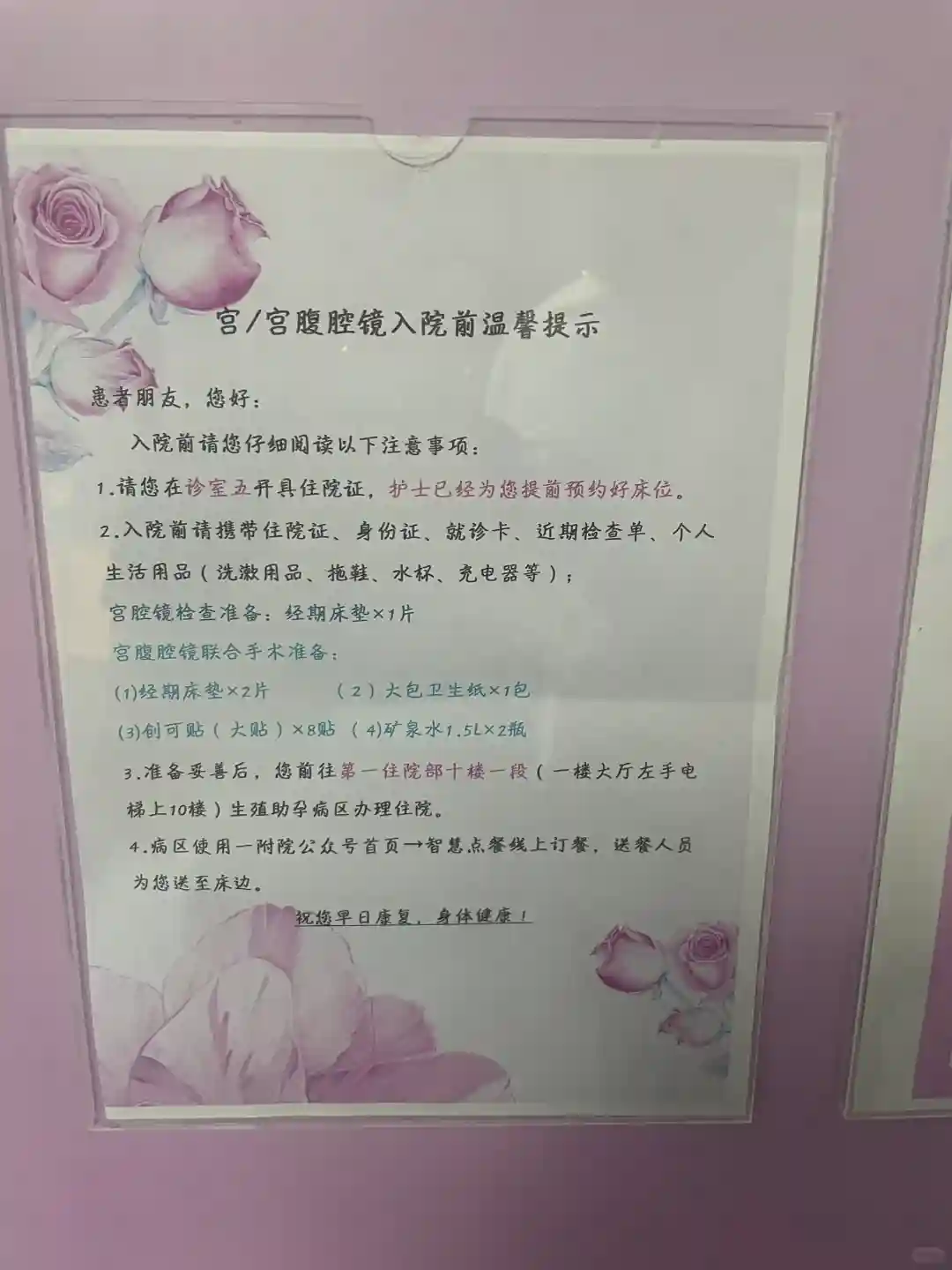 16号下午成功住院,宫腹腔镜手术必须有陪护,也给陪护办理陪护证。