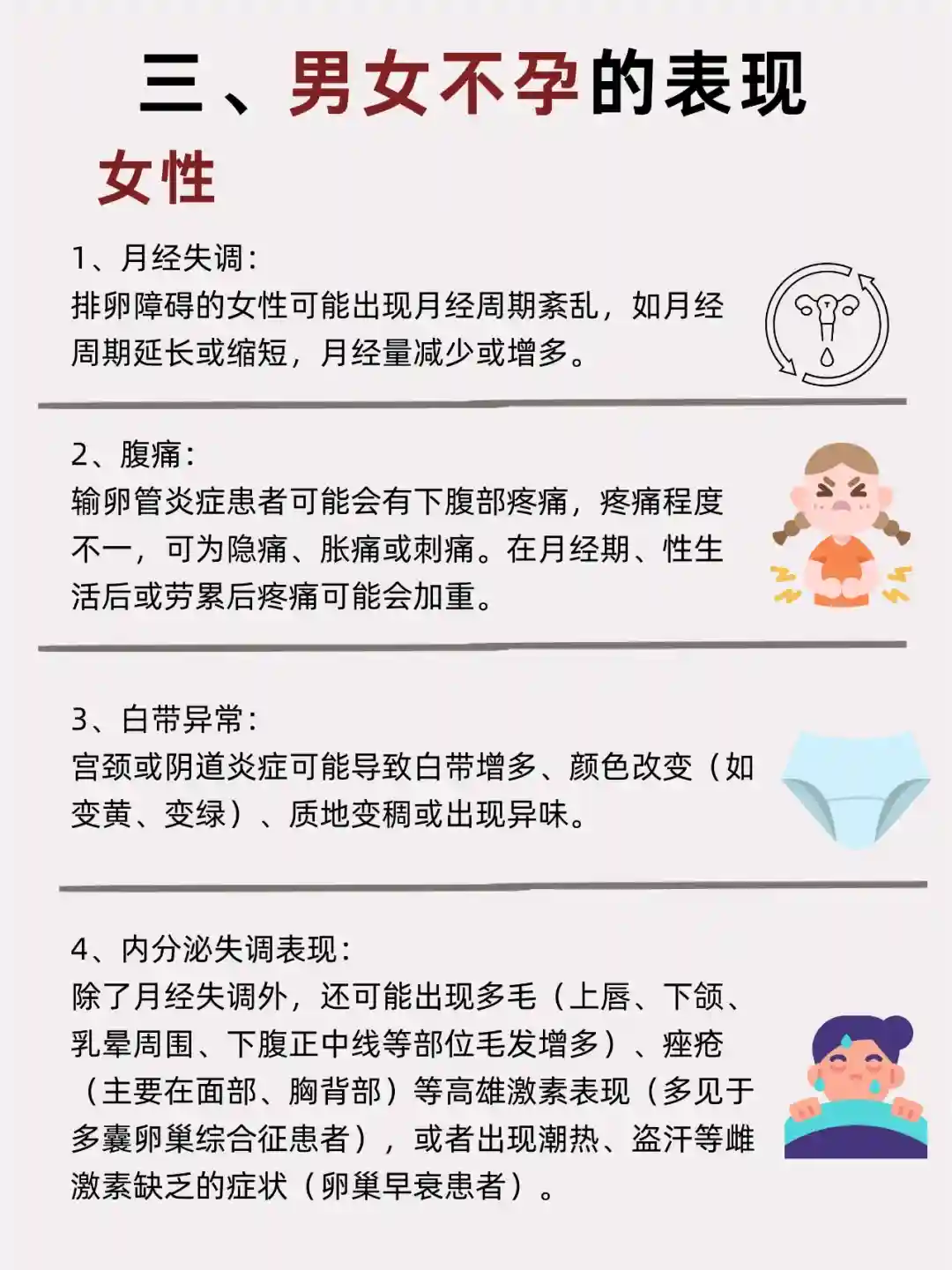 三、男女不孕的表现