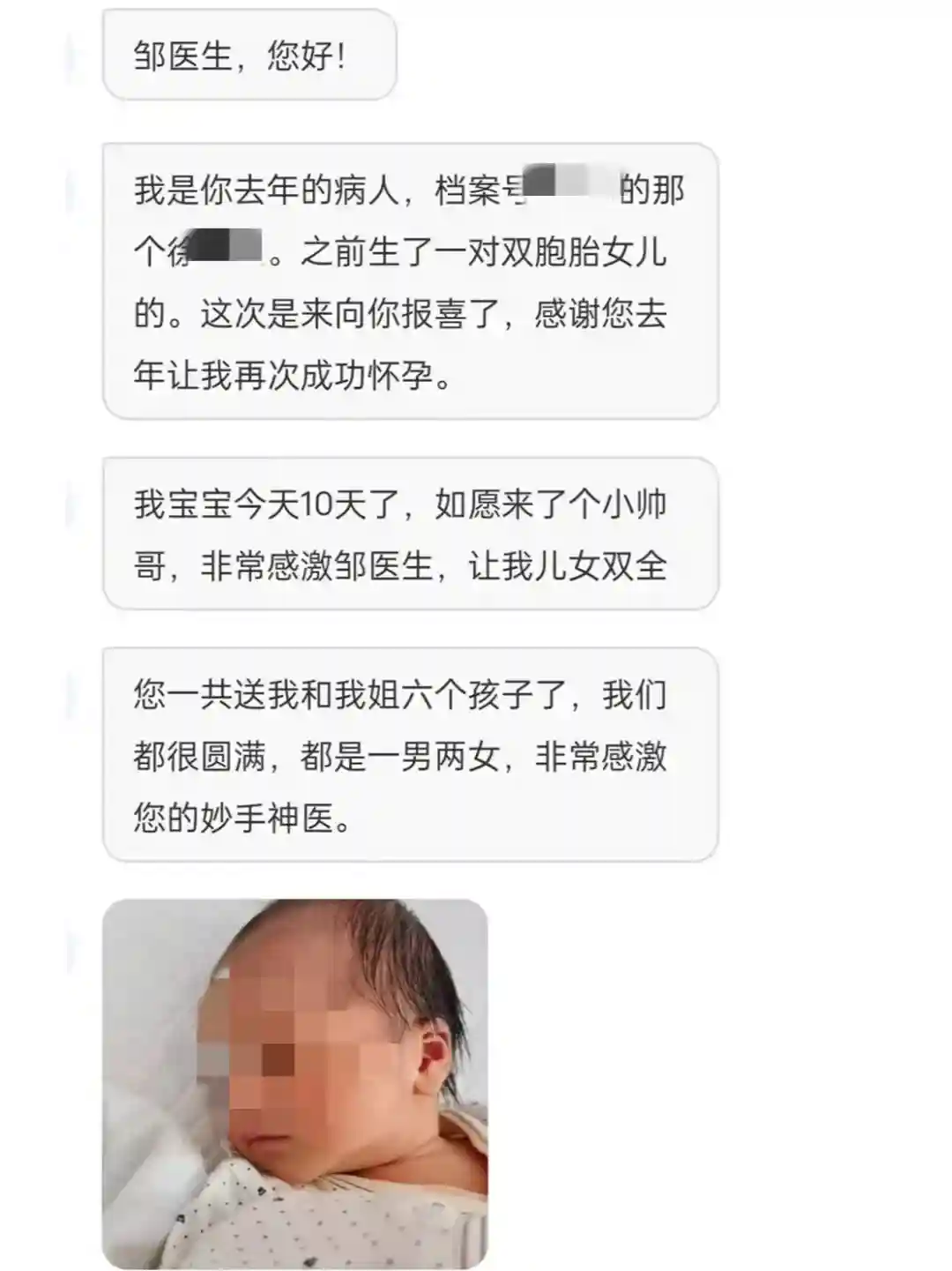 原来,发信息的徐女士和她亲姐姐都曾经是邹红艳主任的患者,也都是在罗湖医院生殖医学中心试管助孕最终达成心愿的幸运儿。