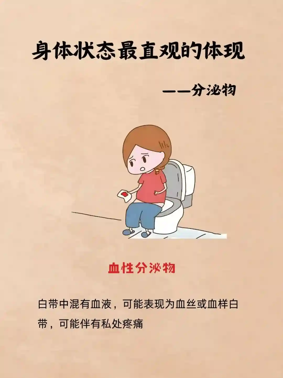 ❌血性分泌物:白带中混有血液,可能表现为血丝或血样白带,可能伴有私处疼痛