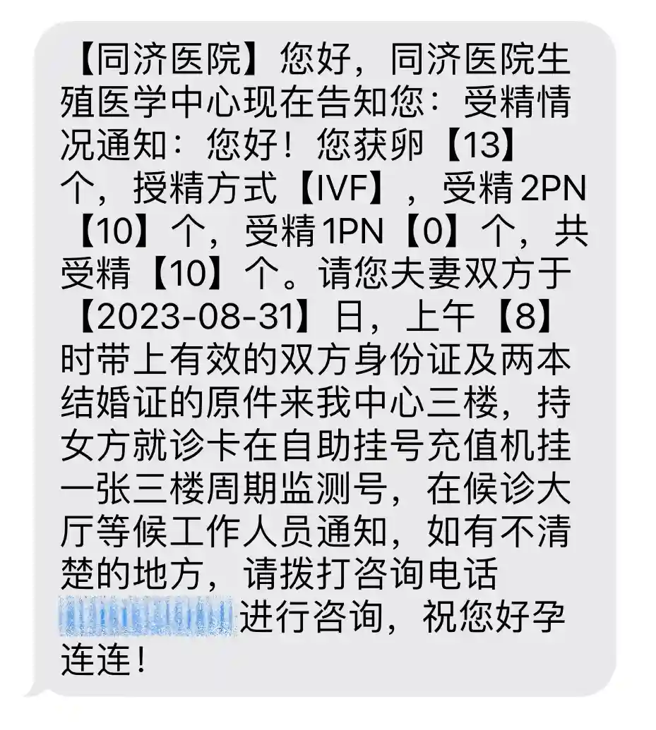 同济试管取卵后3天|返院看胚胎