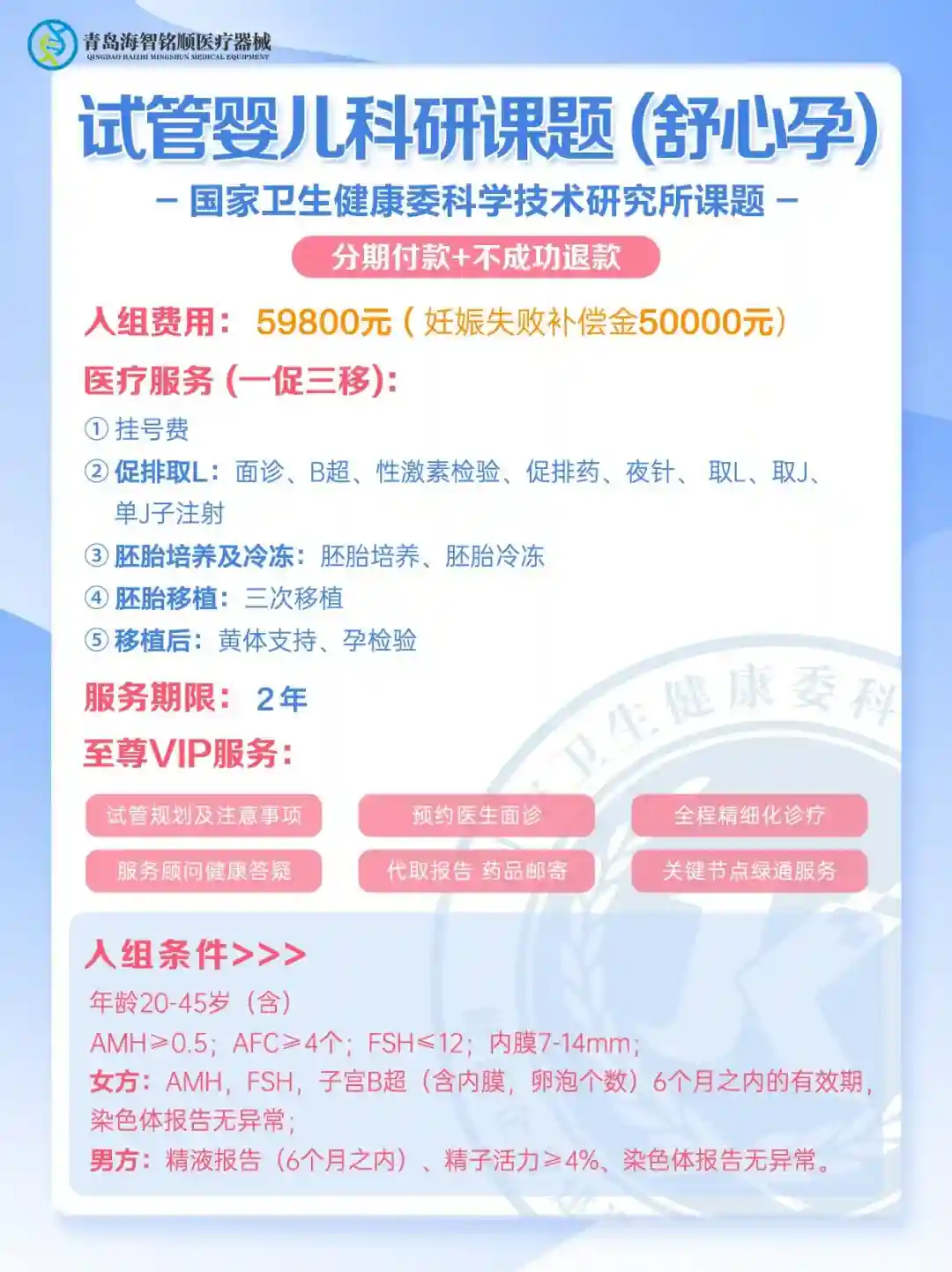 🌟【辅助生殖渗透率万人队列科研项目】科研惠民助孕项目正式启动,2年内未能成功怀孕就退款,最大程度保障大家的成功率,包括: