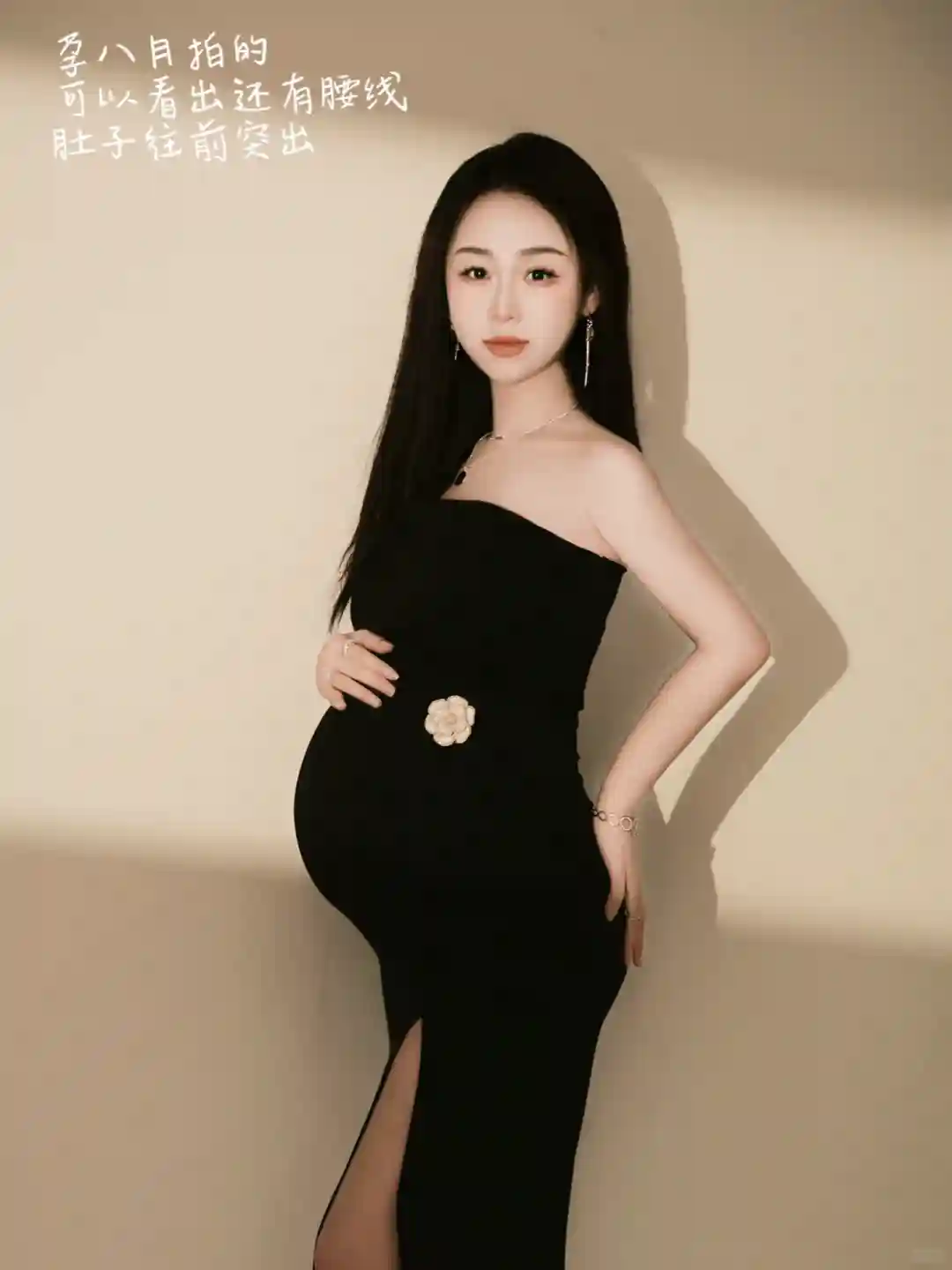 5️⃣肚子是尖的,后面不显怀。肚脐变黑,有一条又黑又长的线,周围长毛毛,往前突出