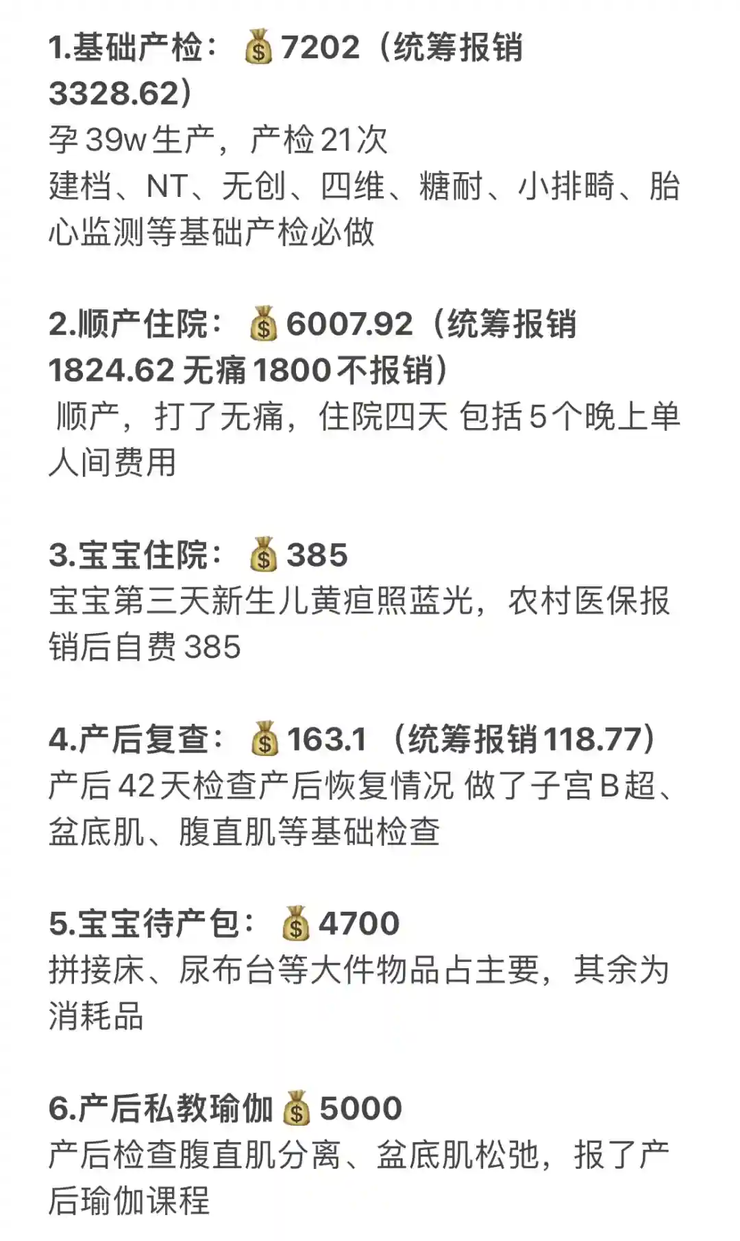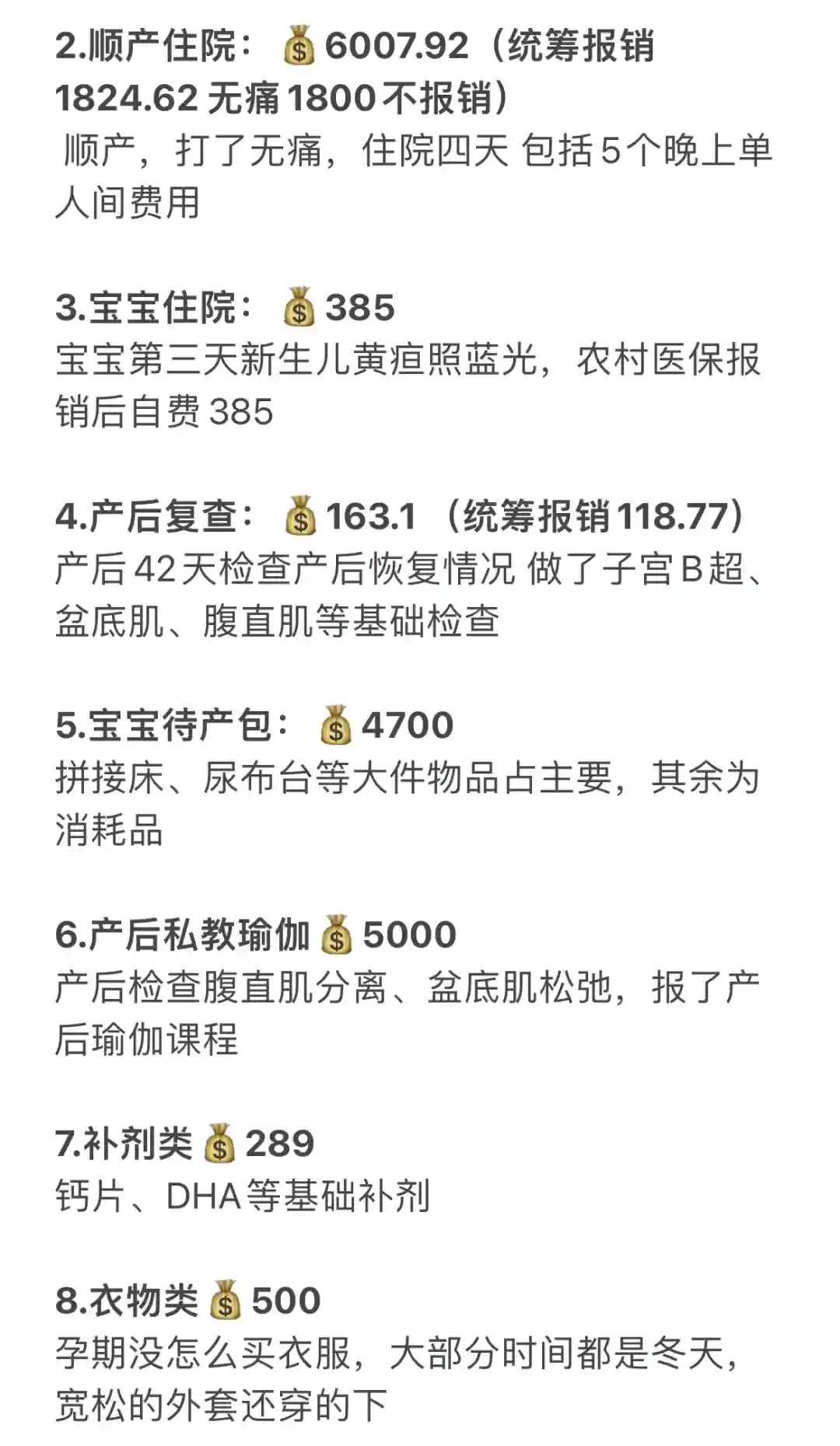 2.顺产住院:💰6007.92(统筹报销1824.62 无痛1800不报销)