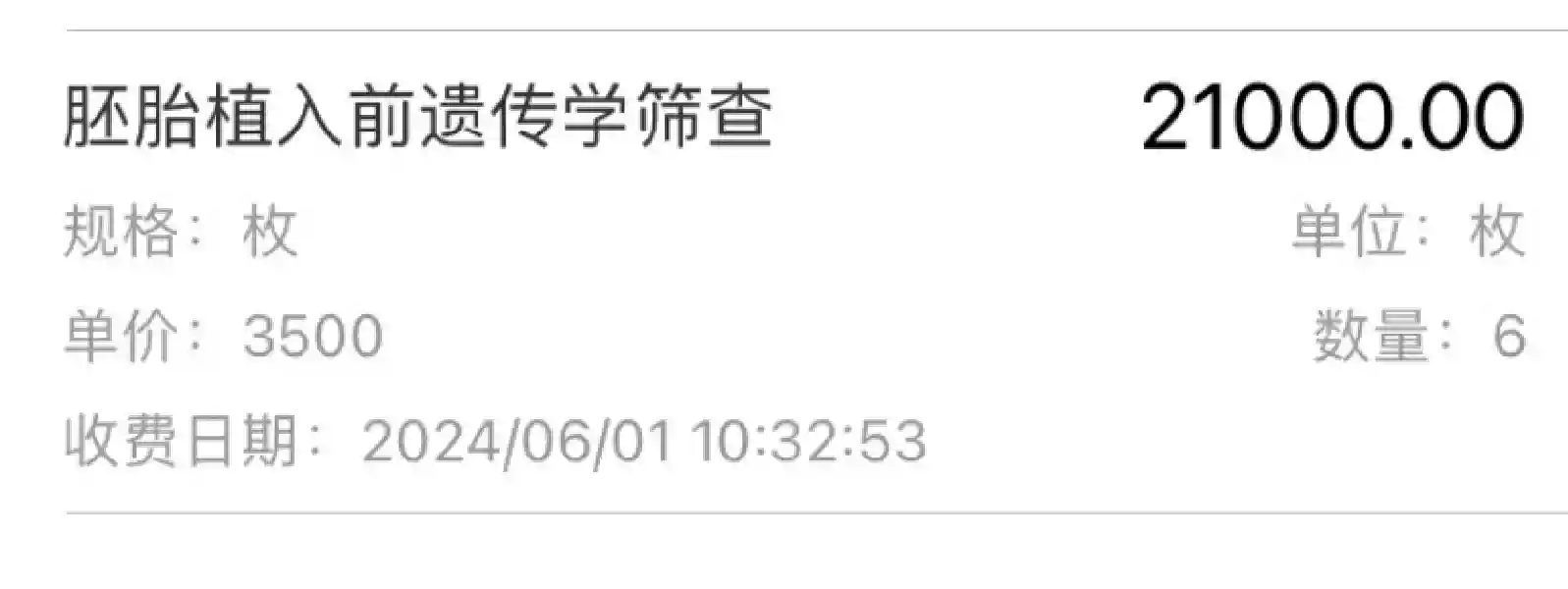 6.1日扣费三代筛查费用2.1万元。#山大生殖试管 #山大生殖三代