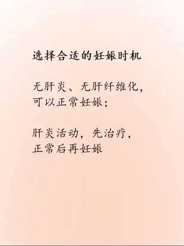 对于慢性HBV感染的妈妈来说,选择合适的妊娠时机至关重要。建议,在计划妊娠前,最好由感染科或肝病科医师对肝脏功能和全身状况进行评估,明确是否存在肝纤维化或肝硬化。