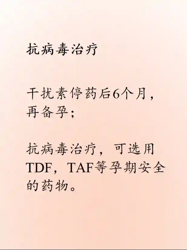 2.如需抗病毒治疗,可选用富马酸替诺福韦二吡呋酯(TDF),富马酸丙酚替诺福韦(TAF)等妊娠安全性较高的药物。