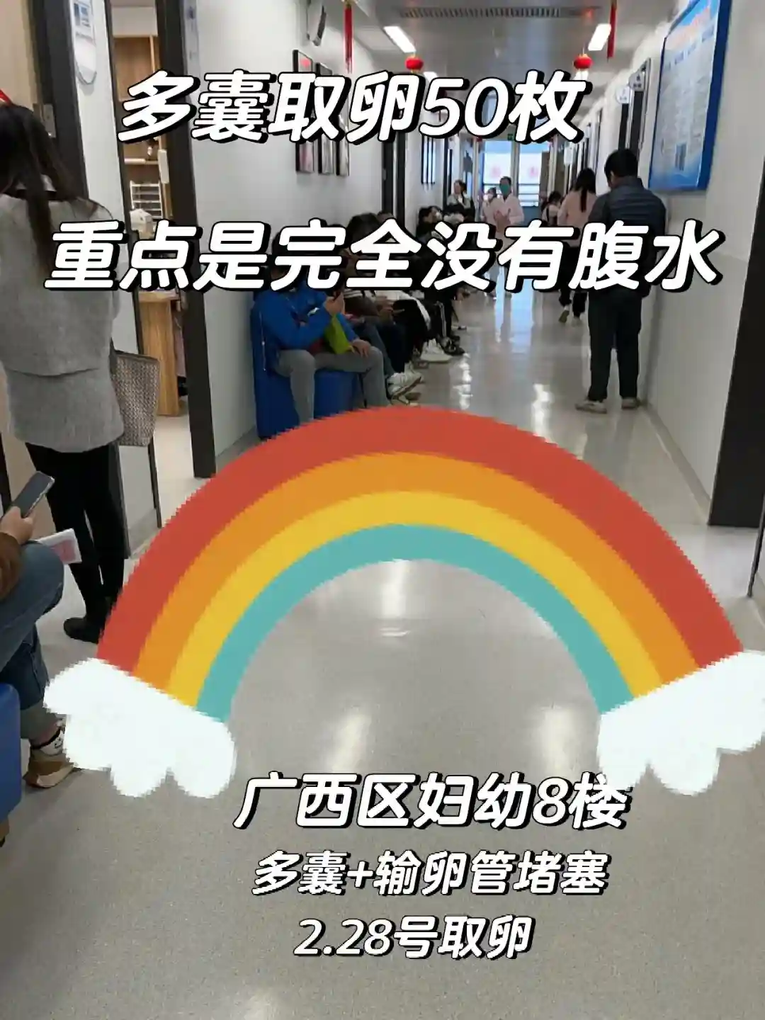 边上班边来医院全程都很佛系,没有过渡的担心,夜针冲洗取卵各种都跟一组的姐妹各种聊天哈哈大笑,护士都说三个女人一台戏我们一群人真能聊,在12楼聊得巨大声被提醒了好多次