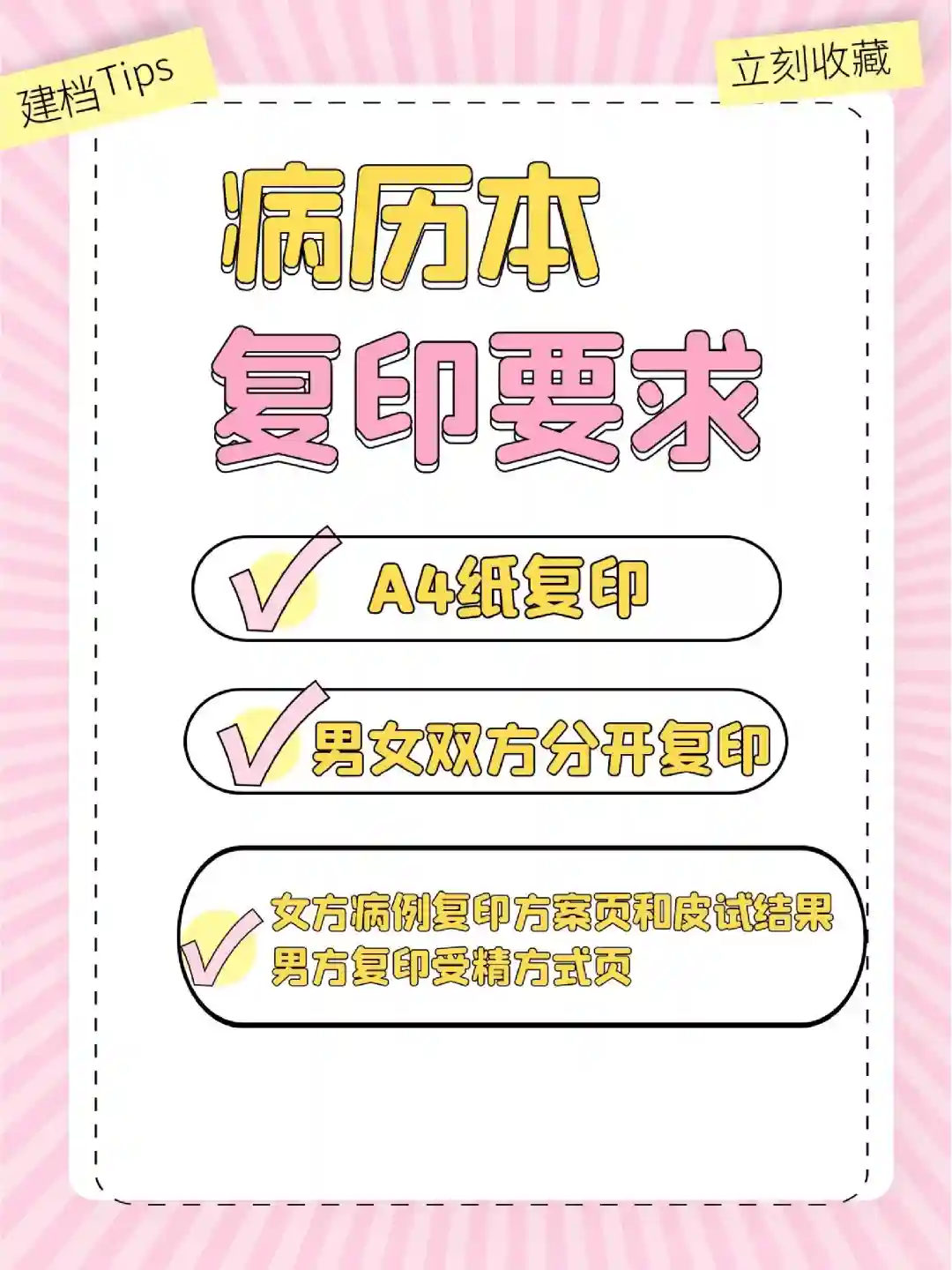 1️⃣关于病历本复印,男女双方需要分开复印,更不能和化验单报告复印到一张A4纸。