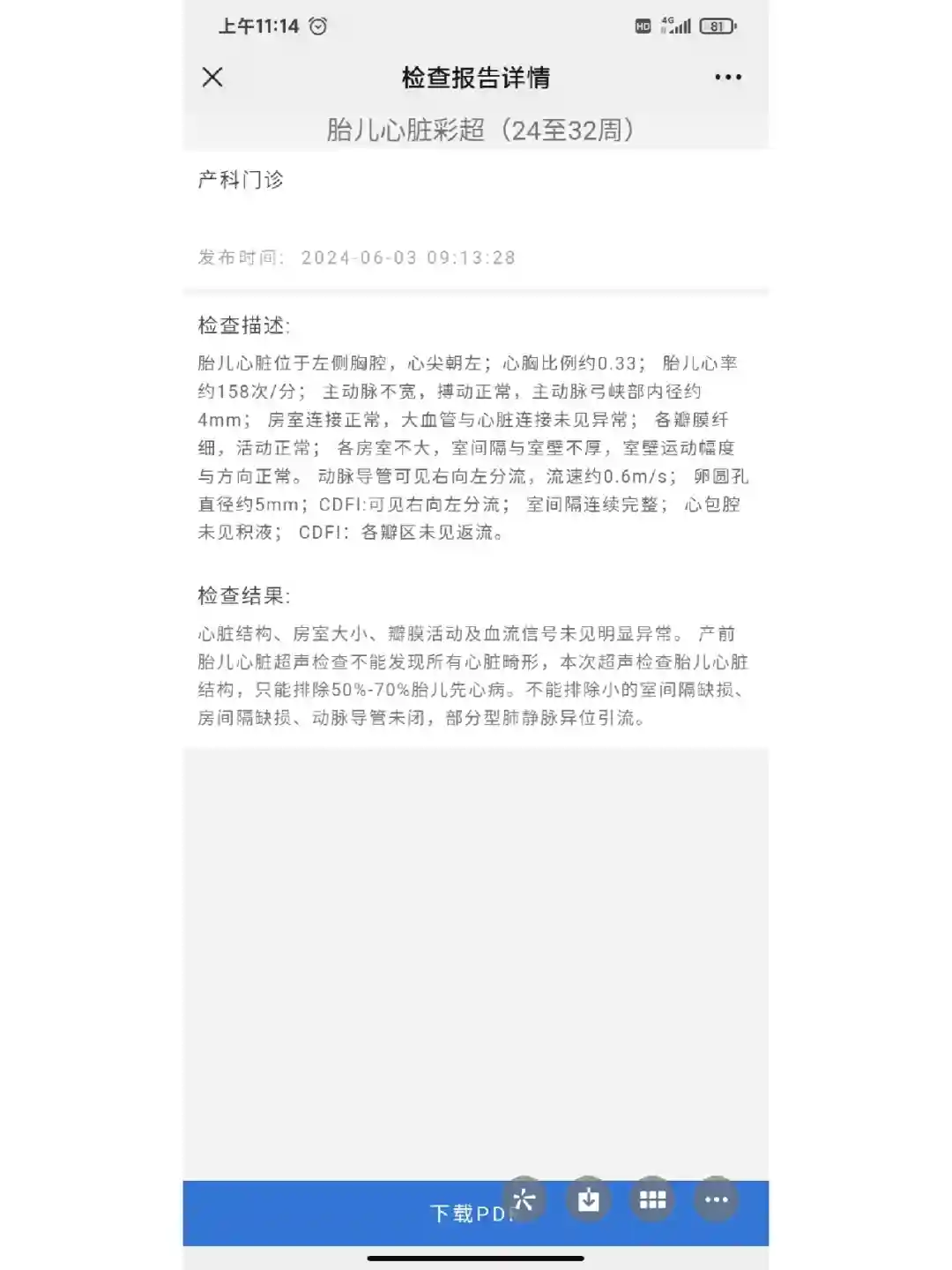 有没有先天性心脏病做过修补手术的孕妈,今年28岁手术已经是二十多年前,我爸妈就说是房缺,小时候心脏瓣膜破了去湖南做了修补手术,后来在本地医院复查了医生说没事,。直到现在结婚怀孕孕晚期30周5天做了自己的心脏彩超如图1,32周2天做了胎儿心脏彩超如图2,去心内科看心内科医生抽血查了心衰竭功能图3也是正常,心内科医生跟我说没事,没意外可以顺产,然而在产科问了两个医生,一个说问题不大,但胎儿体重不能太重,目前还不确定顺还是剖,另一个说我心脏存在轻度的问题,安全起见要剖腹。我现在很纠结我想顺产的,因为听说剖腹产影响生二胎,而且要隔好几年,有没有过这种情况的宝妈,进来聊聊生产经验,你们最后是顺还是剖呀?