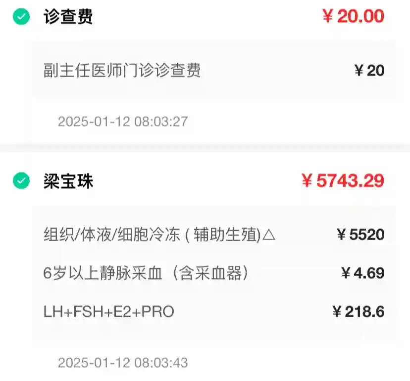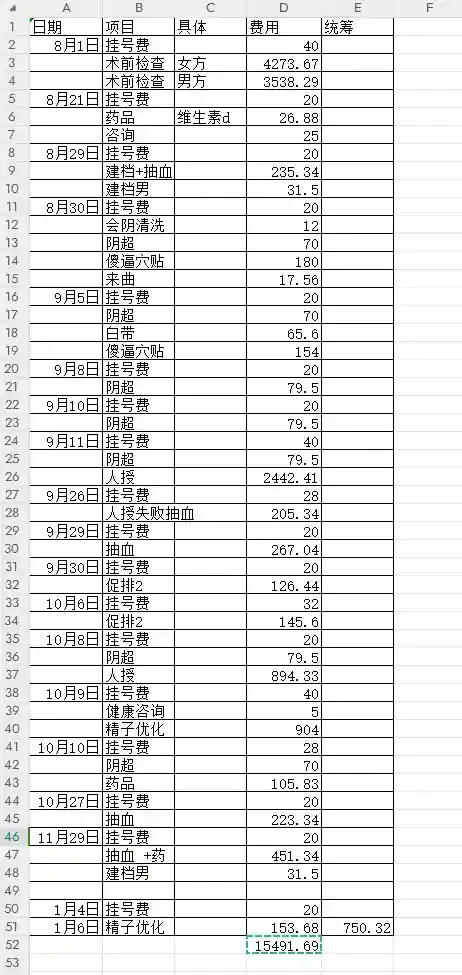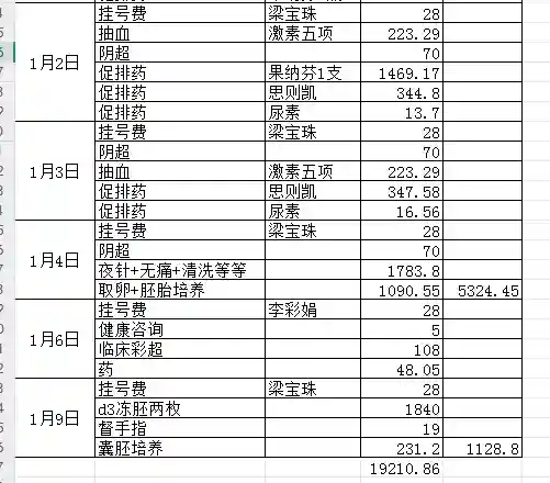 后面更新了三张从术前检查到第一、第二次人授和试管促排的费用