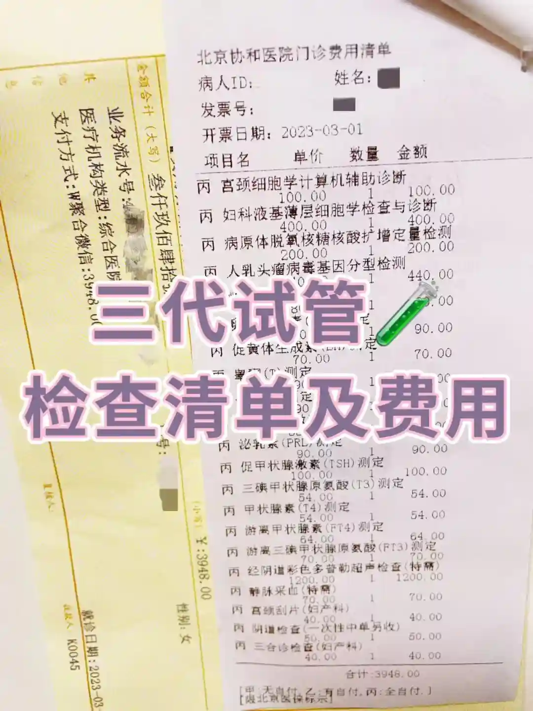我的三代试管术前检查清单(图2)和费用如下: