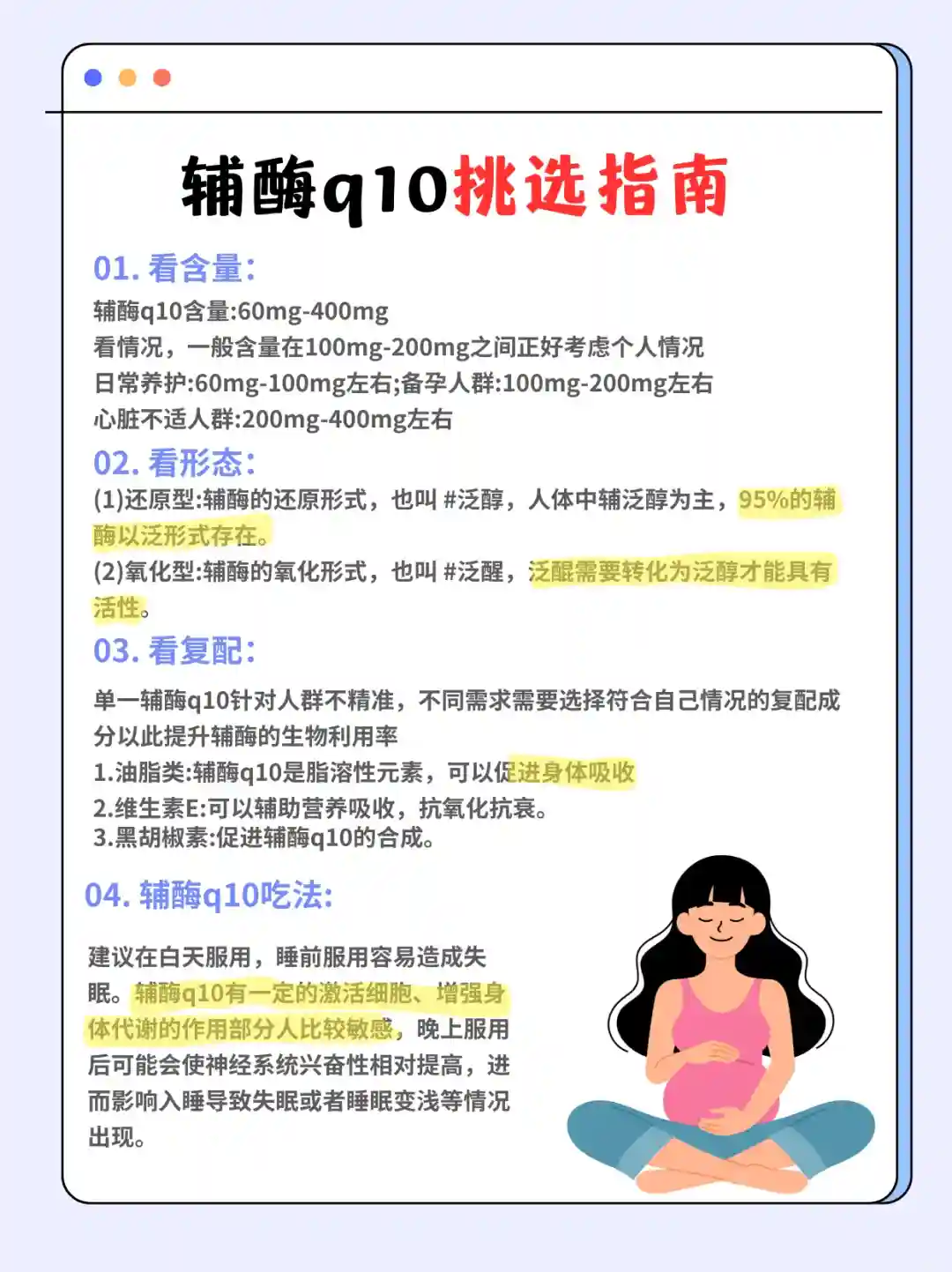 ✔看含量: 备孕人群一天摄入量需要200mg的辅酶q10,单次服用量不建议超过120mg,不宜过多。