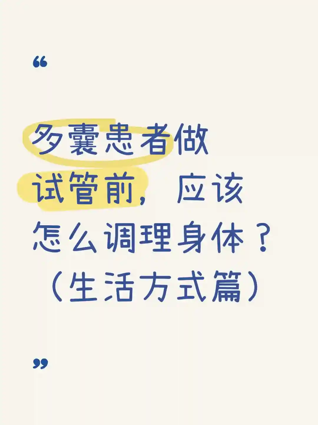 1.养成良好的作息习惯,早睡早起,保证充足的睡眠。🛌睡眠不足会影响内分泌系统,加重多囊症状。建议每天晚上 11 点前入睡,保证 7-8 小时的睡眠时间。2.避免熬夜和过度劳累。熬夜会打乱身体的生物钟,影响激素的分泌。在做试管期间,要注意休息,避免过度劳累。😴