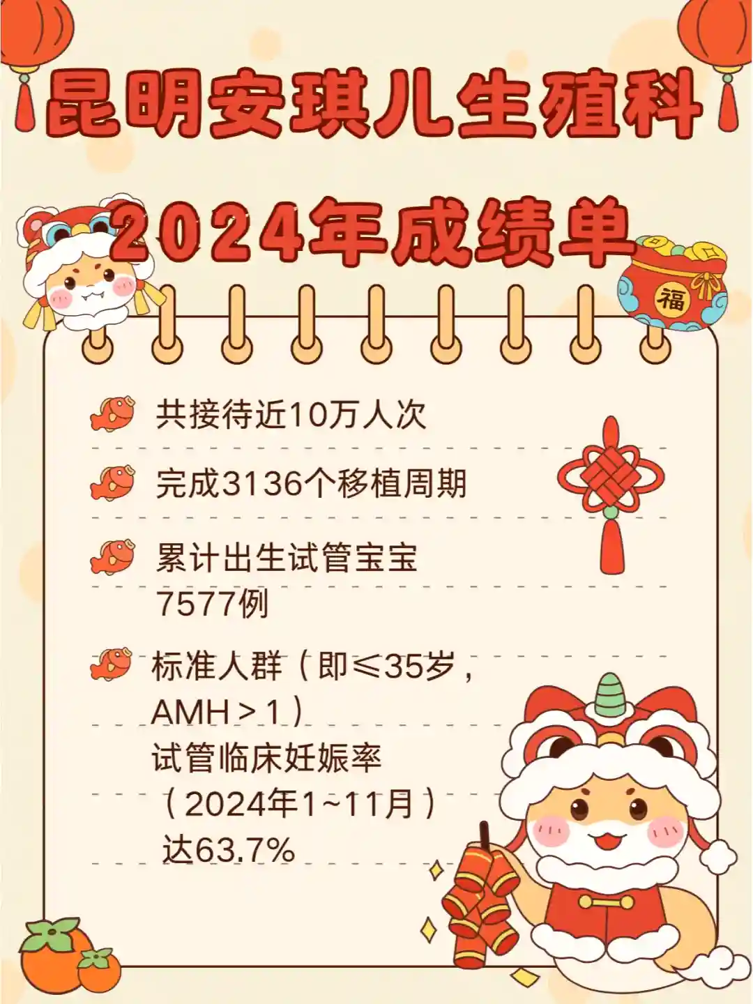 昆明安琪儿生殖科2024年成绩单! 三代试管染色体报告