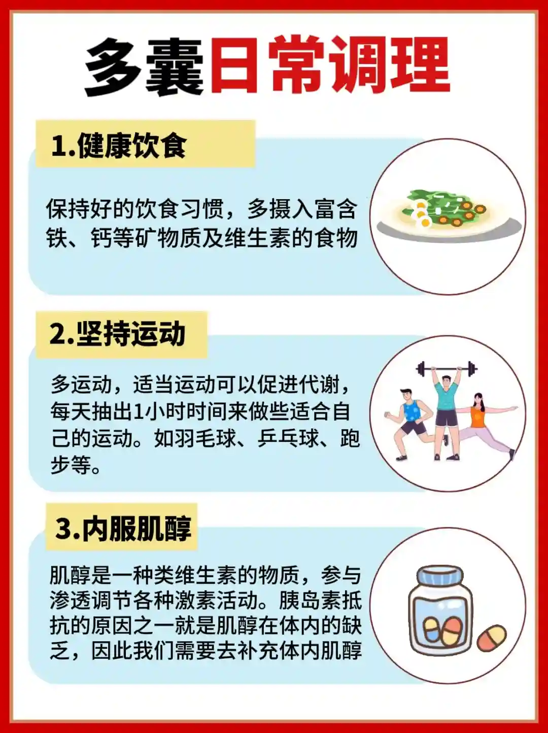 1.每天补充肌醇,一天两次早晚随餐服用,需要坚持调理一段时间。