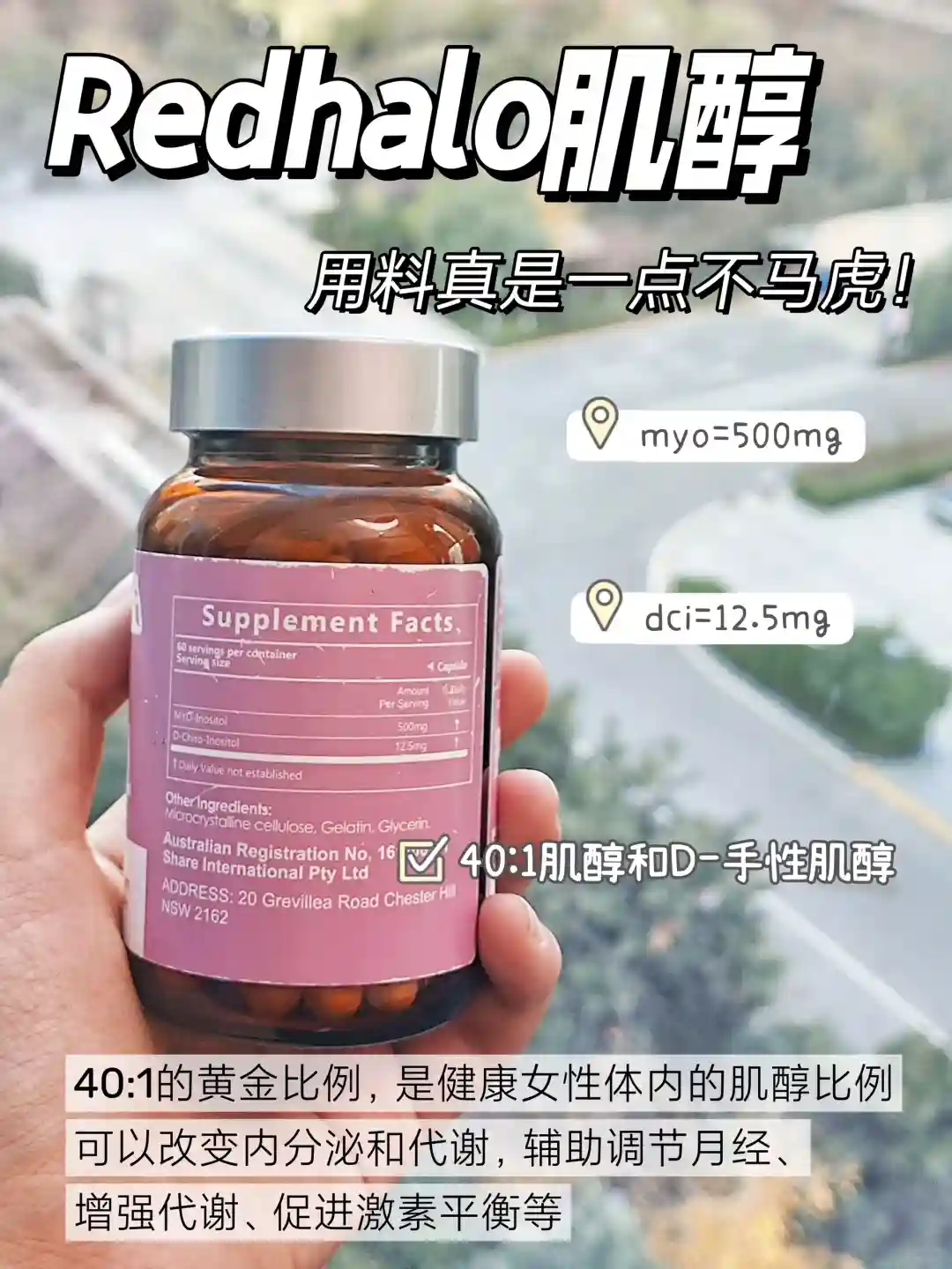 肌醇是人体一种的营养素,本质是一种类似维生素的物质,又被称为维生素B8。redhalo肌醇,是一款双效肌醇,同时含有myo和dci两种成分,肌醇比例40:1,成分活性比较好,含量也合适。一天两次一次两粒,每天早晚随餐服用。