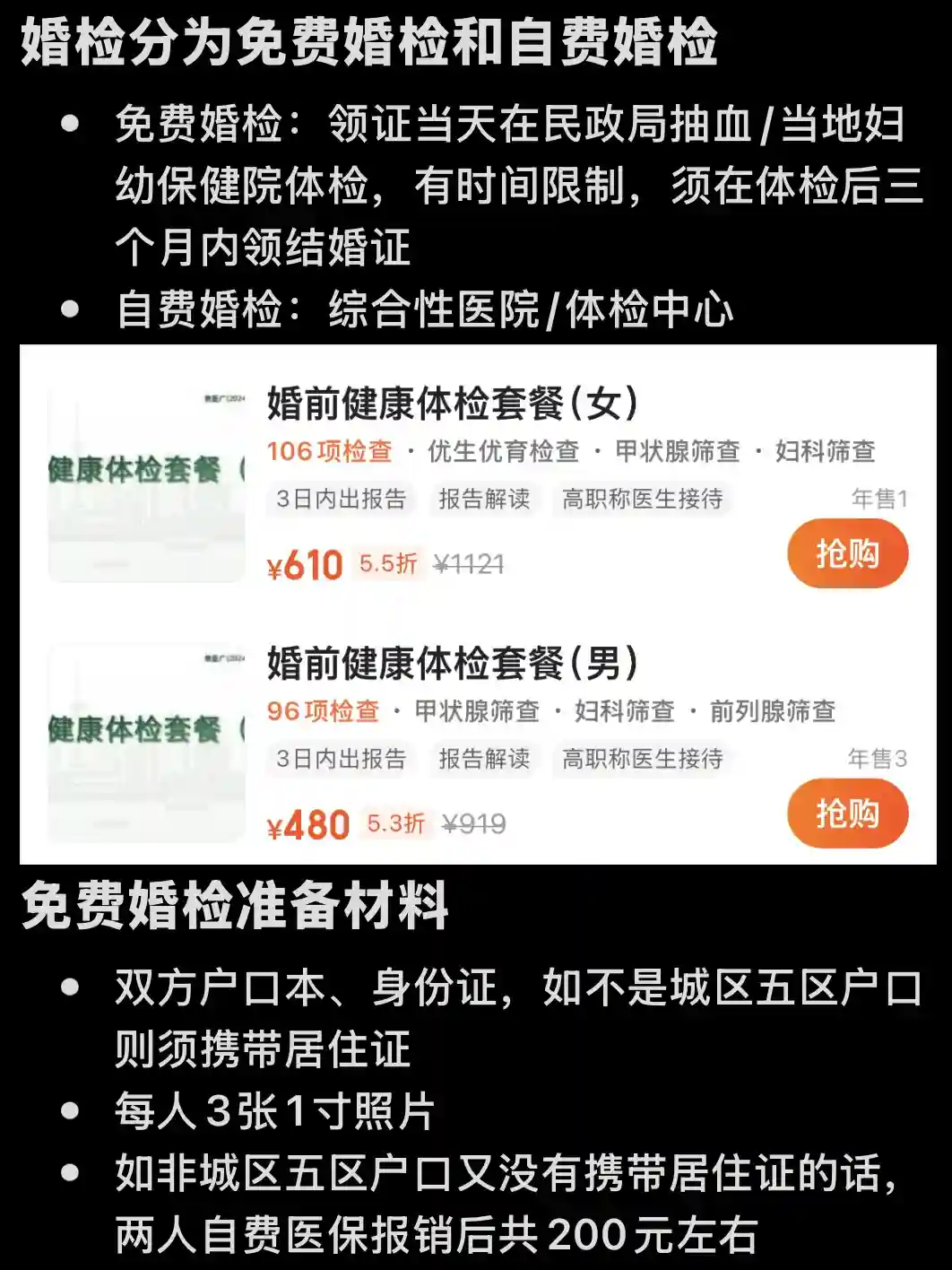 1️⃣免费婚检:领证当天在民政局抽血/当地妇幼保健院体检,有时间限制,须在体检后三个月内领结婚证