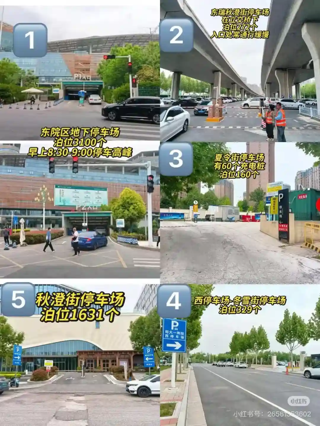 院区的地下停车场早上8-9点是停车高峰期,注意避开。夏令街停车场有充电桩,新能源车停这里比较方便。