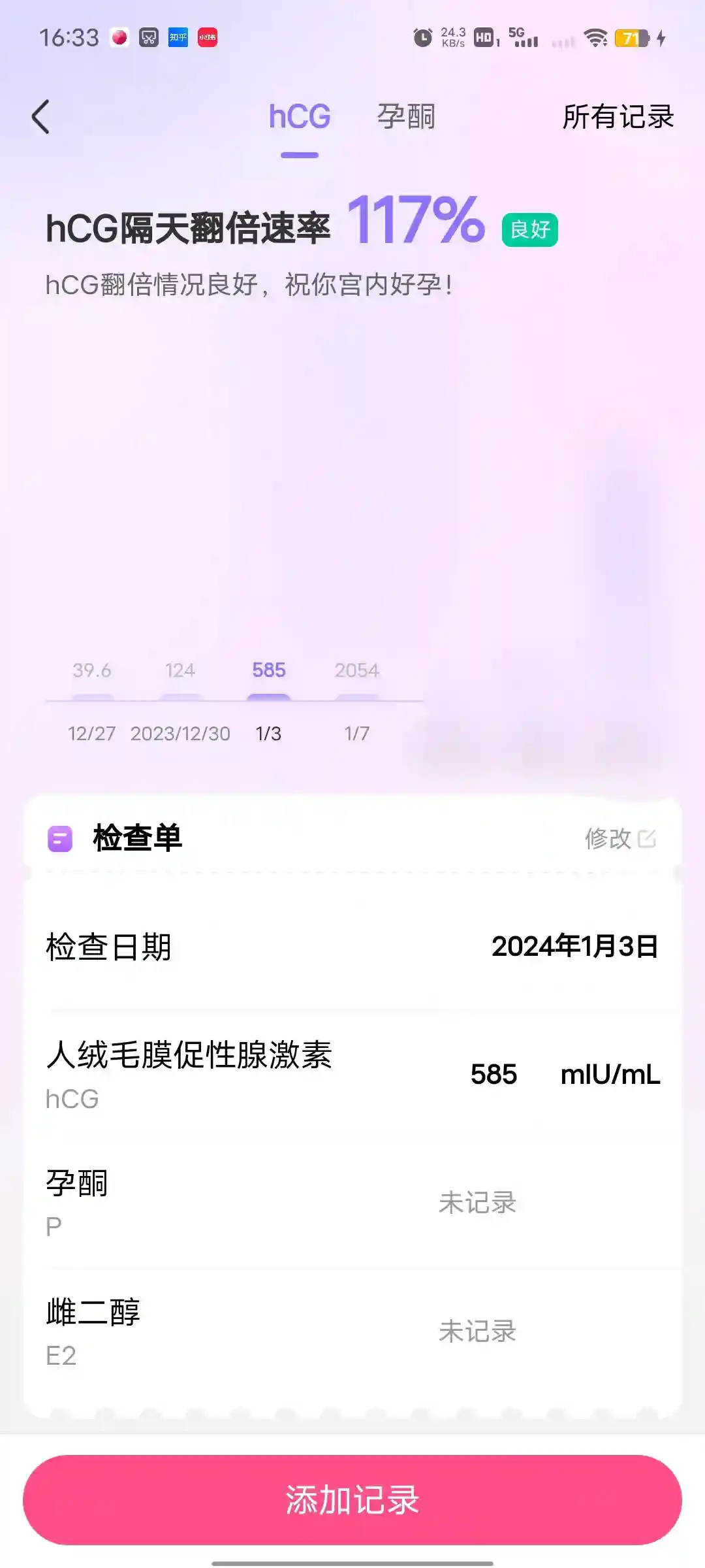 再往后就是查hcg隔天翻倍情况,连续三次都达标,就没有再查过,转投入腹水的治疗。