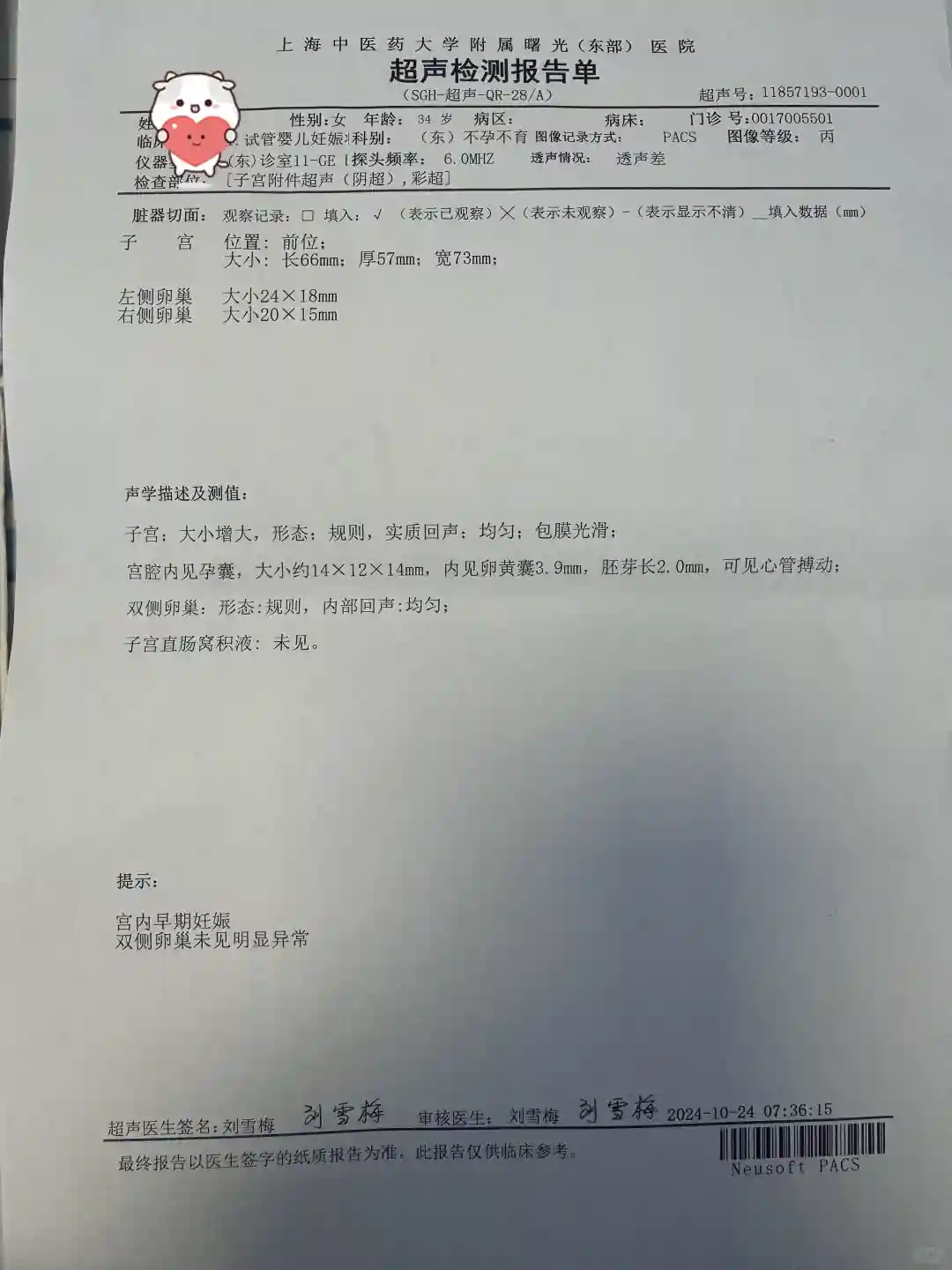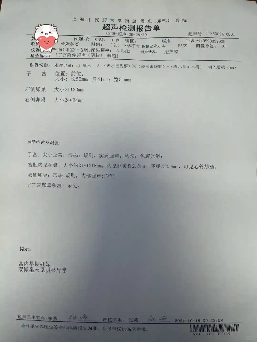 这个女孩今年31岁,之前运气不好,自怀了两次,一次生化一次胎停,在我这边查了复发性流产的相关检查。门诊促排指导同房第二次怀上了,目前已经通过了一超,继续保胎中,希望她后续一切顺利