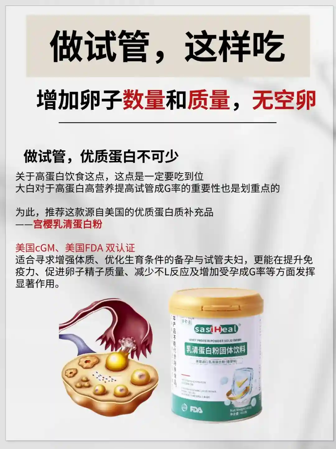 #备孕饮食 #备孕吃什么 #试管 #试管之路 #试管饮食 #卵子质量 #卵子健康 #试管蛋白粉 #宫樱乳清蛋白粉