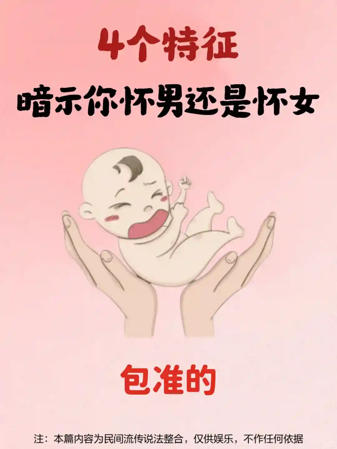 相信很多孕妈姐妹怀孕的时候都会通过各种方法测试自己怀的是男是女,不过这些也是仅供参考,因人而异。给大家整理了一些我孕期的特征,大家可以参考一下!