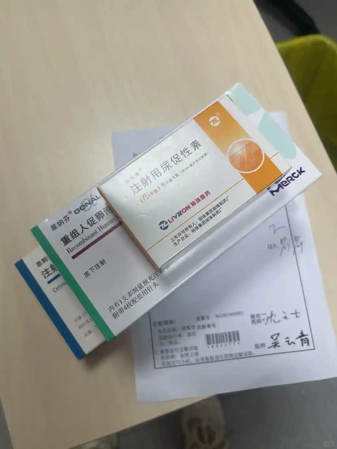 8月21号一大早就去去医院抽血和做B超,下午安排进周促排了。喜提果纳芬150剂量,尿促75。连打四天。