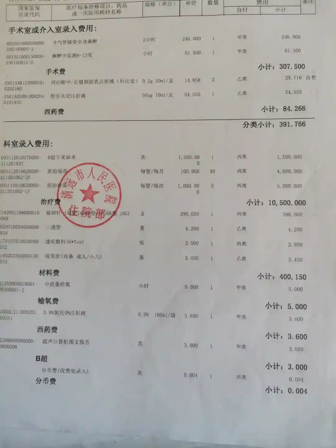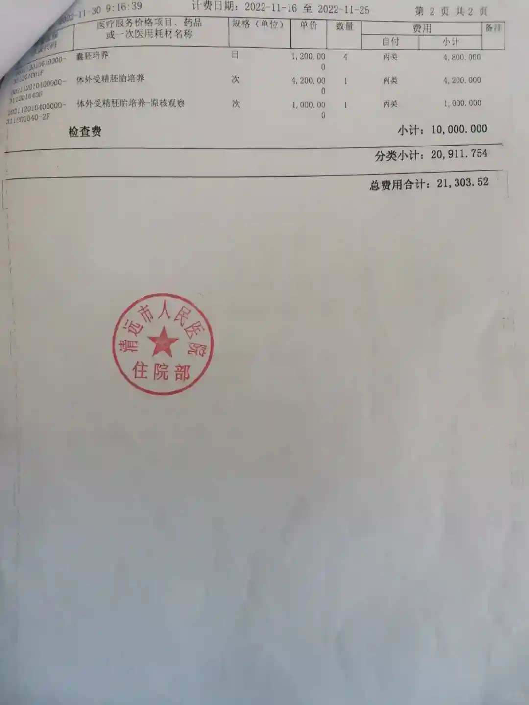 费用:促排卵针8172+取卵术和冻胚21303=29475元,另外我看中医调理约2千,我先生建档前检查用药约4千元