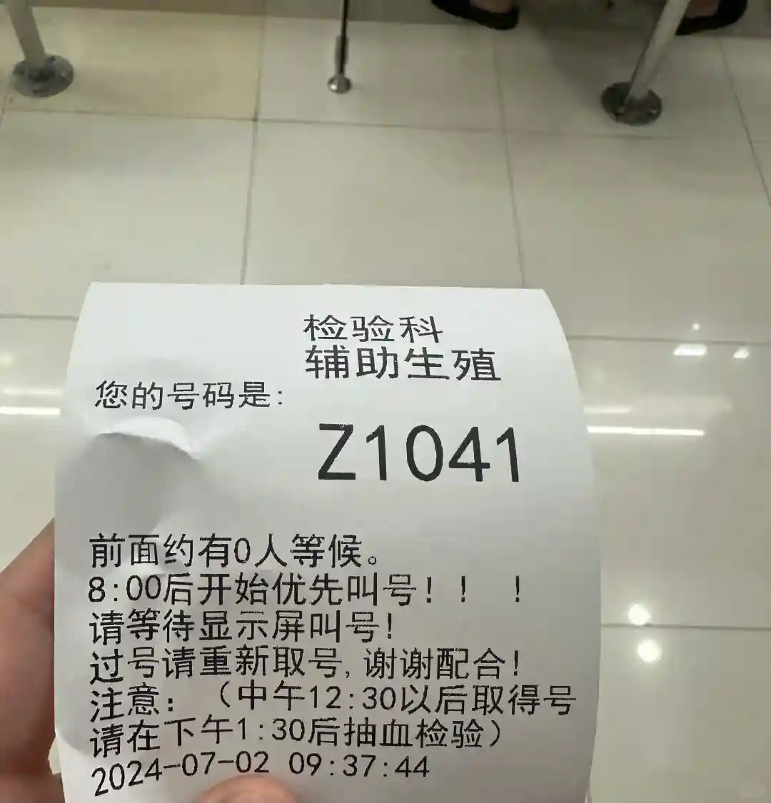 2. 取辅助生殖抽血号(Z开头,图2),不用排队,取完号就可以抽上。千万不要取普通抽血号(A开头),排队人很多,各科室都在一起。我有碰到辅助生殖的抽血号还不能取的时候,我就取了普通抽血号,然后直奔辅助生殖抽血窗口去抽血,也可行