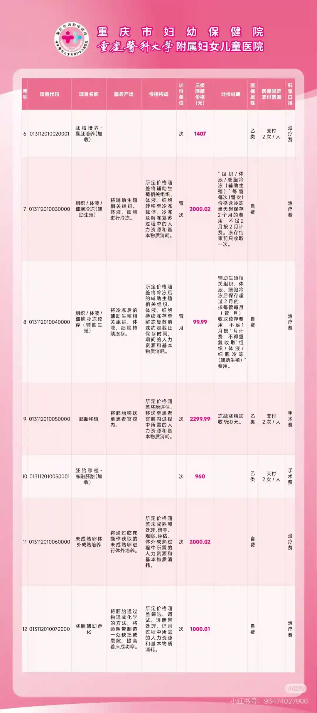 好多姐妹在问哪些项目可以报销,做🧪要多少💰,这个具体我也还不清楚,因为目前我刚取完卵,也就经历了取卵阶段的报销不同身体状况做的不同🧪方案花费也是不一样的。(图234)是重庆妇幼的🉑报销明细,感兴趣的姐妹可以参考下。