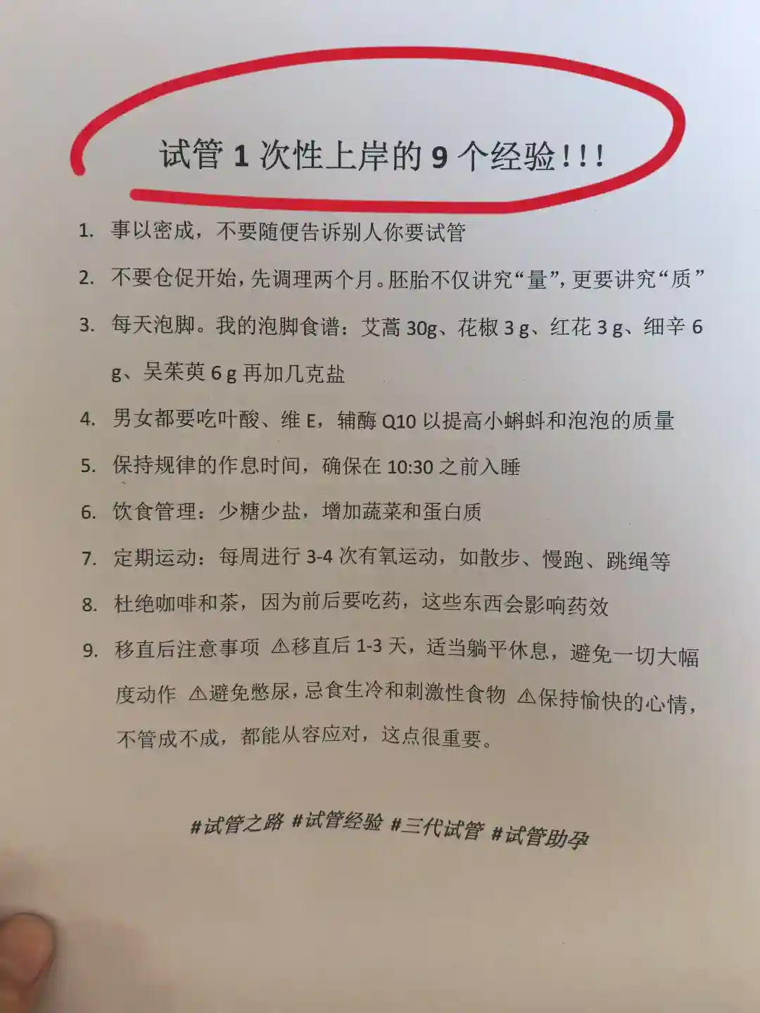 比如泡脚这事,并不适合所有体质的姐妹,就好比姐妹分享移植后多吃西柚利于着床,平常不常吃的姐妹尝试了之后会拉肚子;又比如药物过敏这块,别人注射特尔津头疼呕吐,你可能就没啥反应,但是你提前搜了心理有暗示了就进入提前焦虑状态了;再比如取卵这个环节,一直嚷嚷可怕的,可能根本没经历过。-