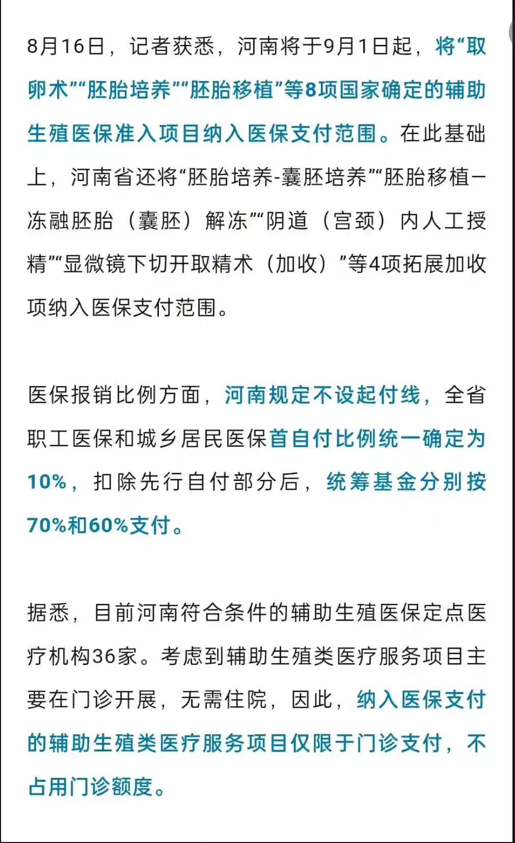 现在好了,我们河南的生殖辅助技术即将纳入了医保。