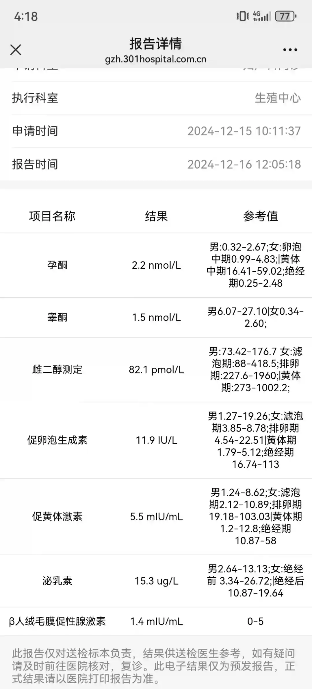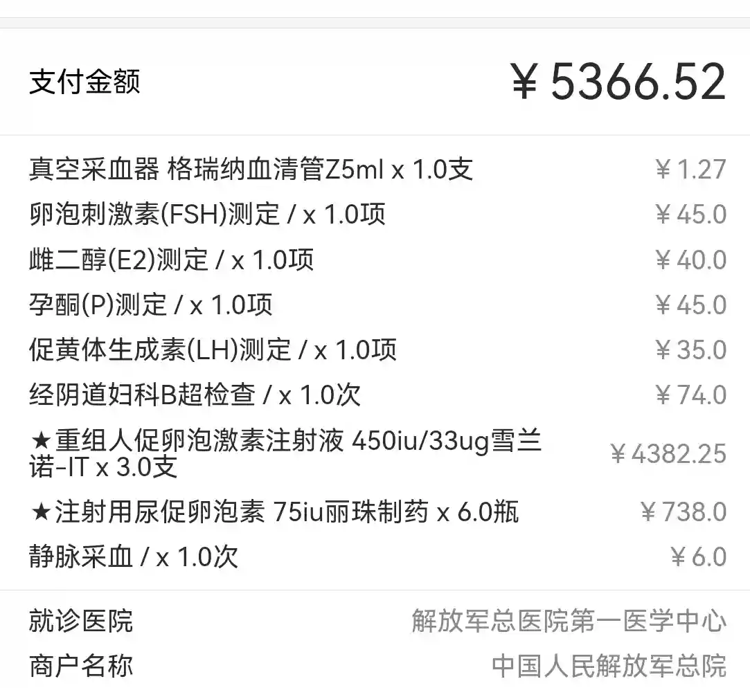 出来等血值和单子,后来单子先出来了。方案❗️6天💉果纳芬+尿促75。消费5000多,果然不便宜呢。12月21日返院抽血+B超。开心的是21号周六,不用请假,压力减小点。