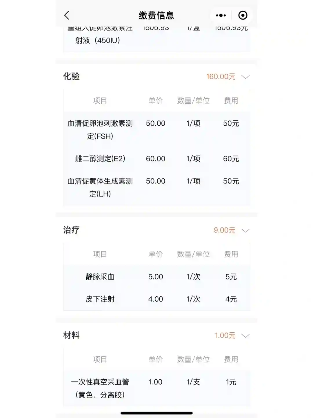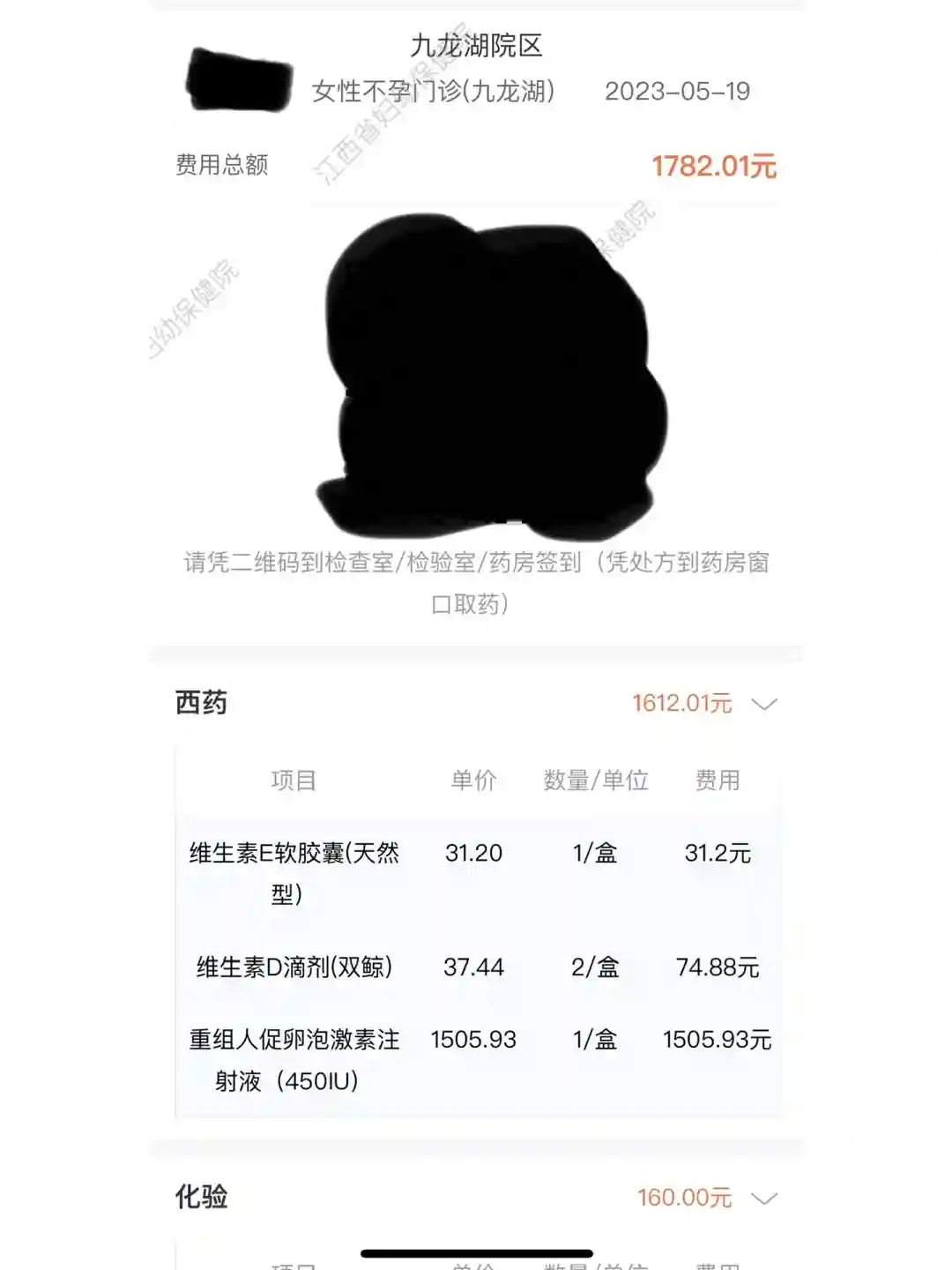 当天交的促排针、d3、维e和下次返院抽血费1782